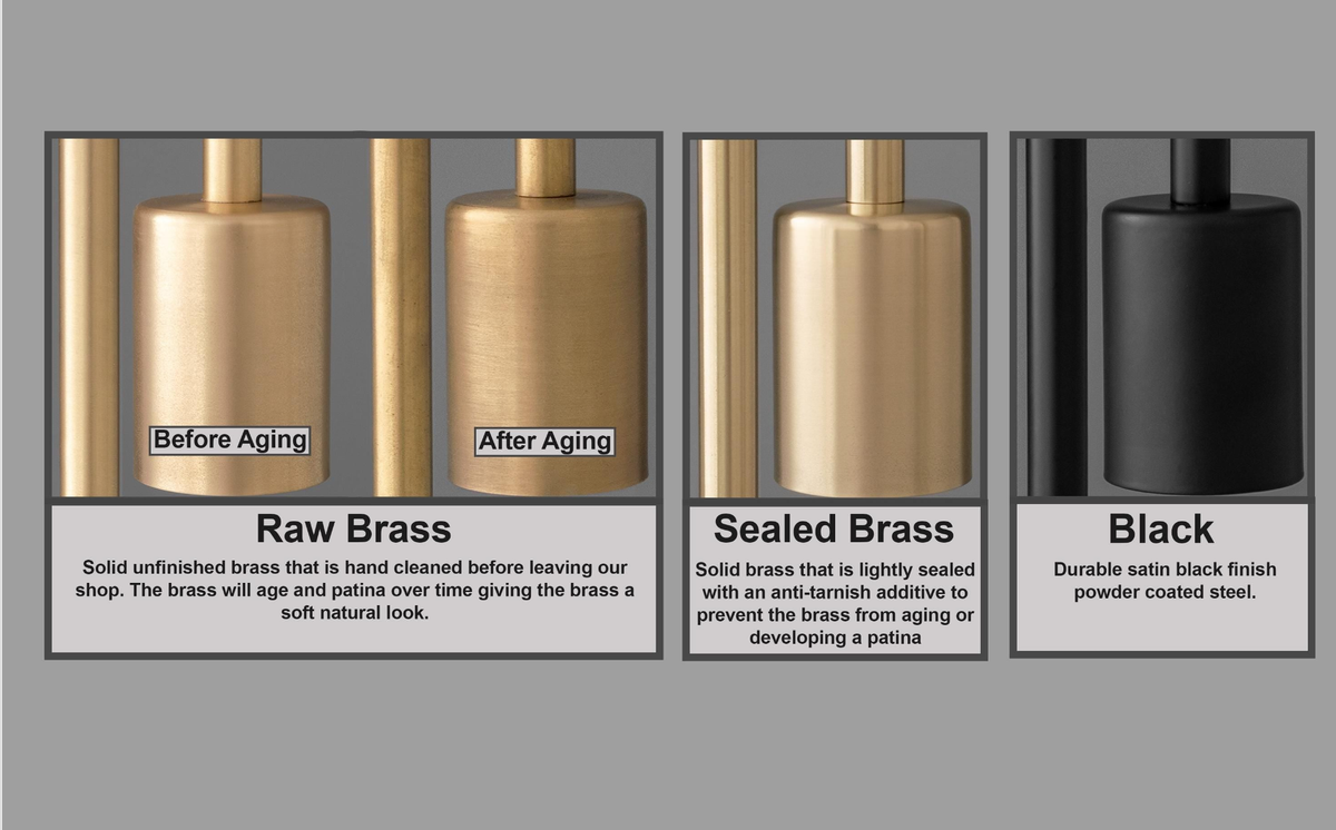 - Sealed Brass - Solid brass that is lightly sealed with an anti-tarnish additive to prevent the brass from aging or developing a patina.