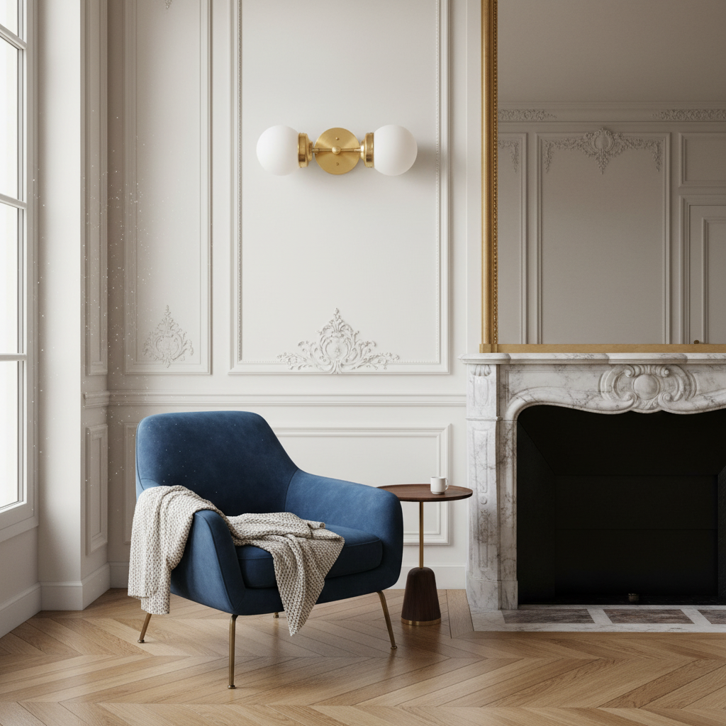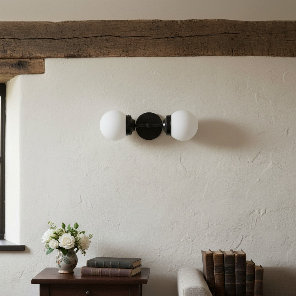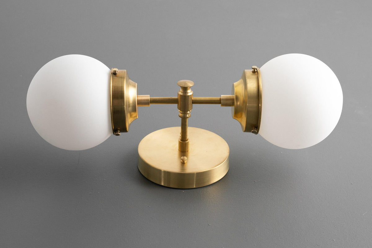 Add a touch of understated elegance to your space with our contemporary vanity light. Featuring a refined geometric design and soft satin glass globes, this sconce provides perfect task lighting while serving as a decorative element. The clean lines and balanced proportions make it versatile for various interior design schemes, from minimalist to glamorous. Create a cohesive look with this beautifully crafted lighting solution.