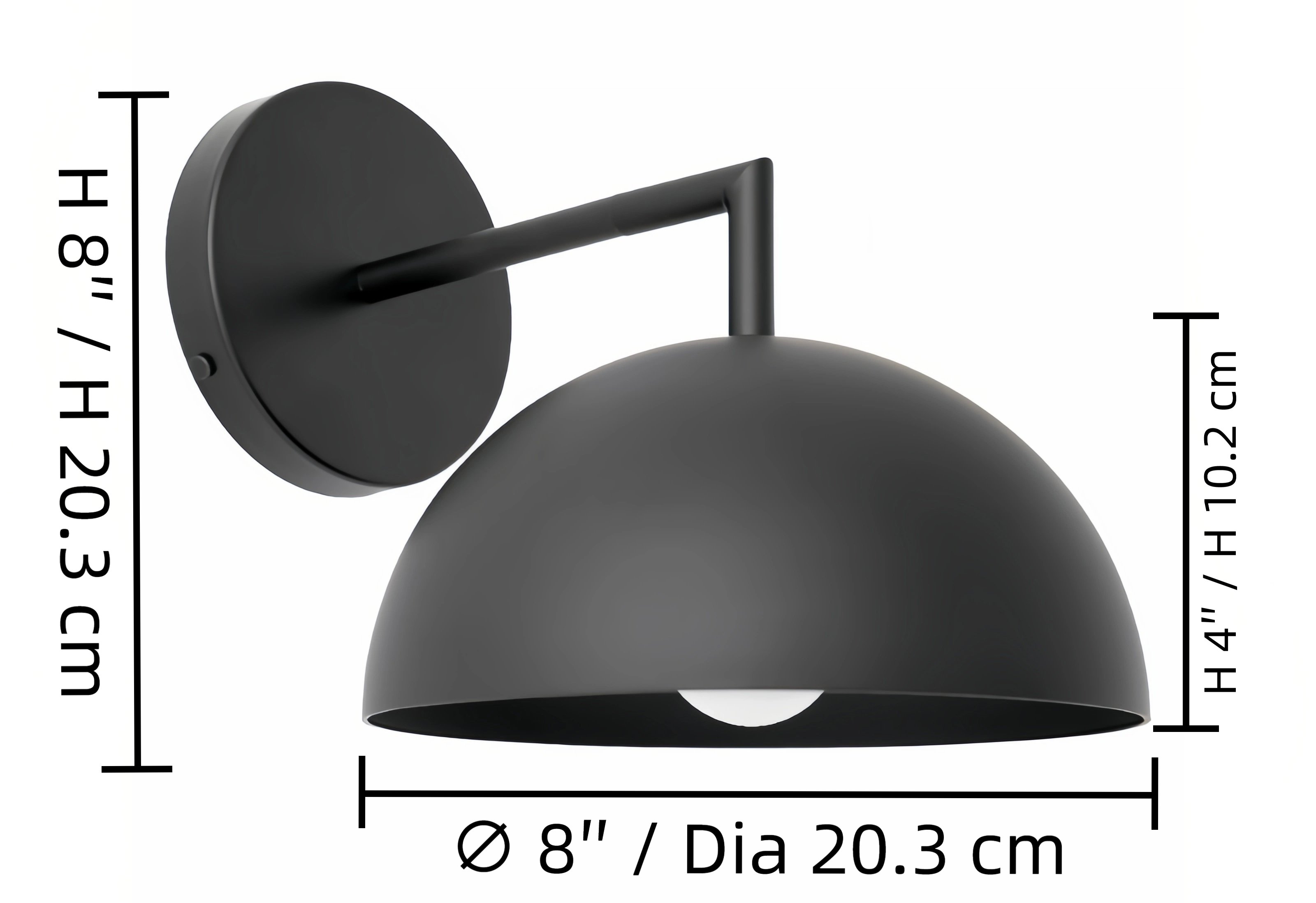 Metio Dome Minimalist Dome Sconce - Stylish Colorful Wall Light - 8" / 20.3 cm / Black