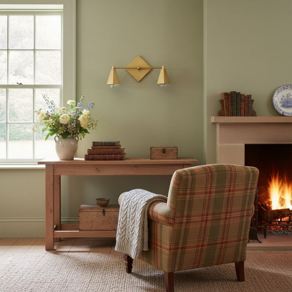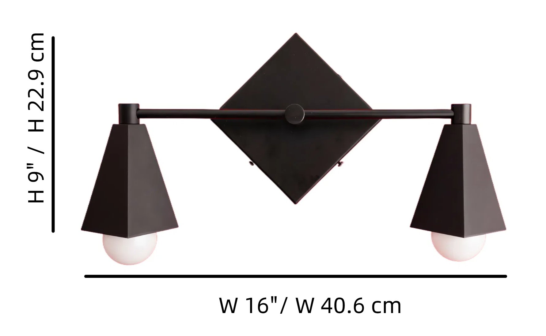 Ornato Luxe Geometric Vanity Light - Solid Brass Art Deco Bathroom Lighting - 16"/ 40.6 cm / Raw Brass