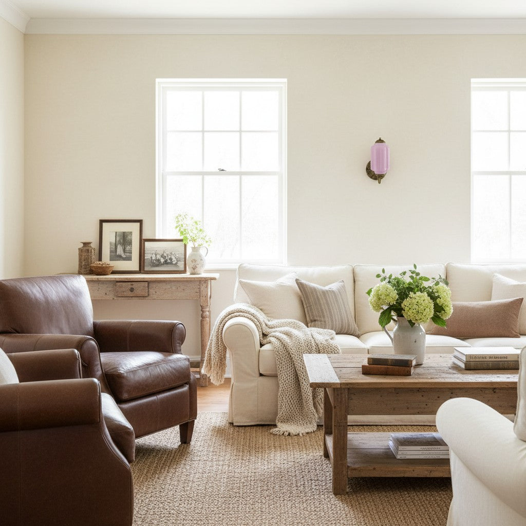 With its smooth milk glass and antique brass base, the Eloise wall sconce exudes vintage elegance. Designed to offer a soft, diffused light, it brings sophistication to bedrooms, hallways, and intimate living spaces.