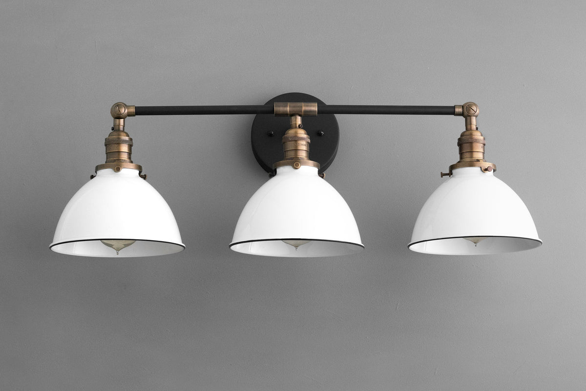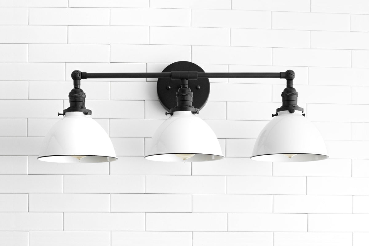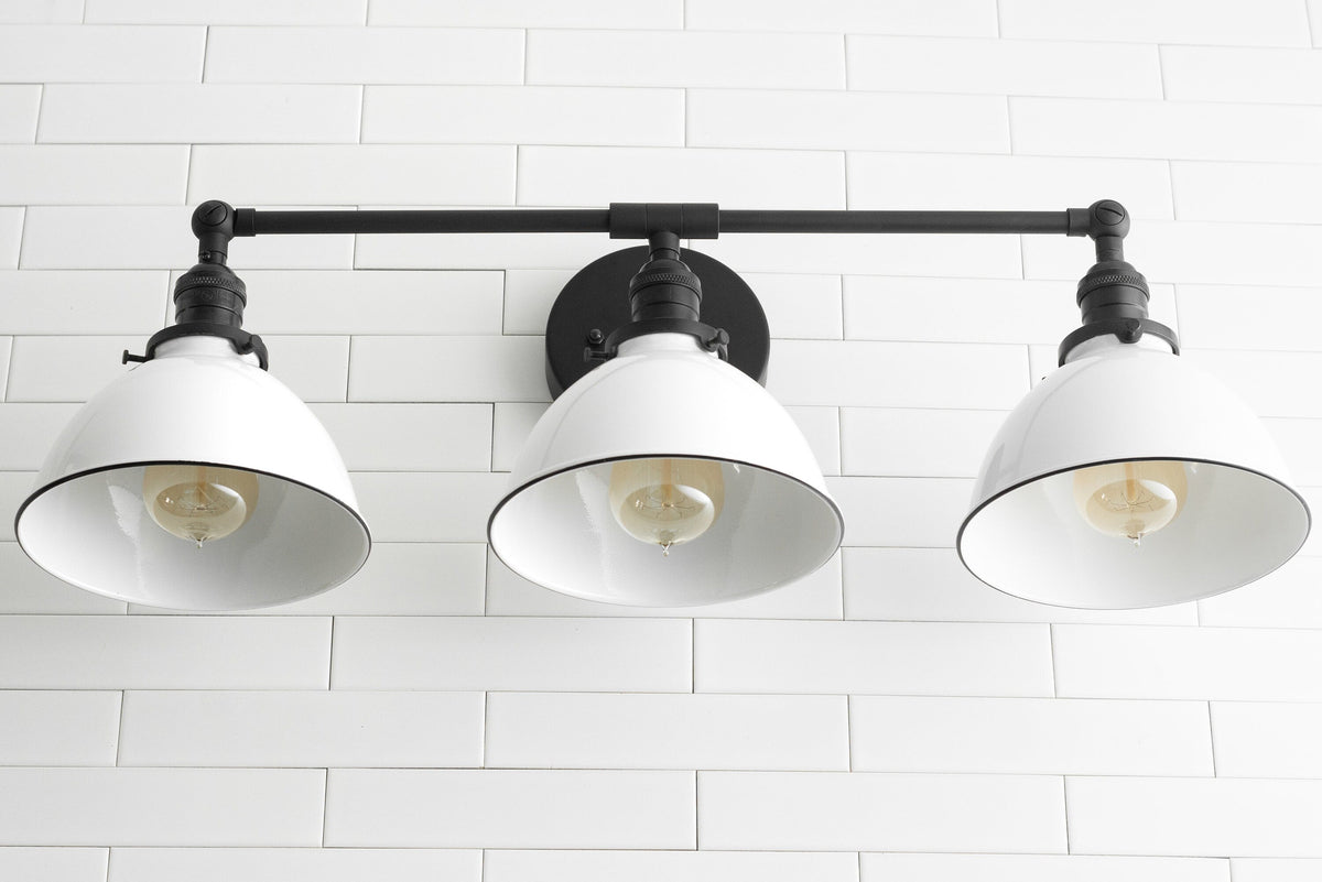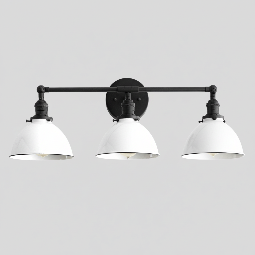 Conique Metal Industrial Modern Vanity for rustic bathroom - Black / 3 Heads: 26"/66.04 cm / White