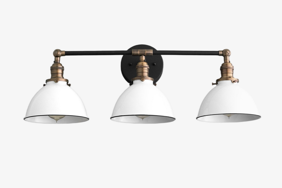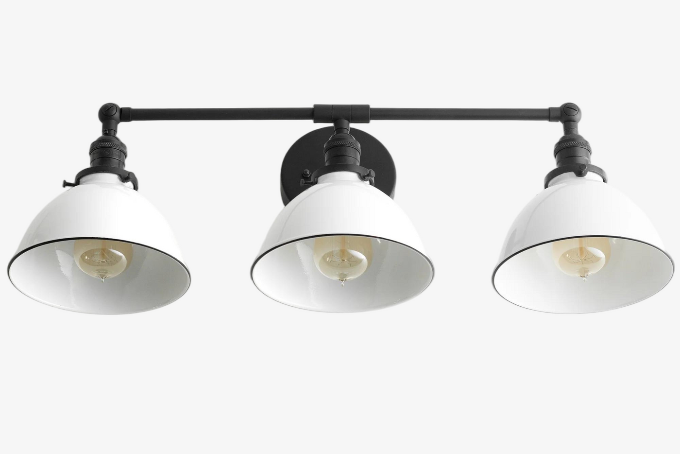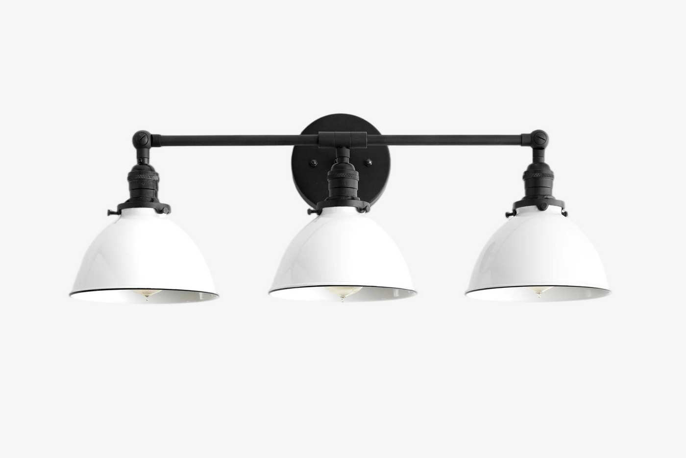 Conique Metal Industrial Modern Vanity for rustic bathroom - Black / 3 Heads: 26"/66.04 cm / White
