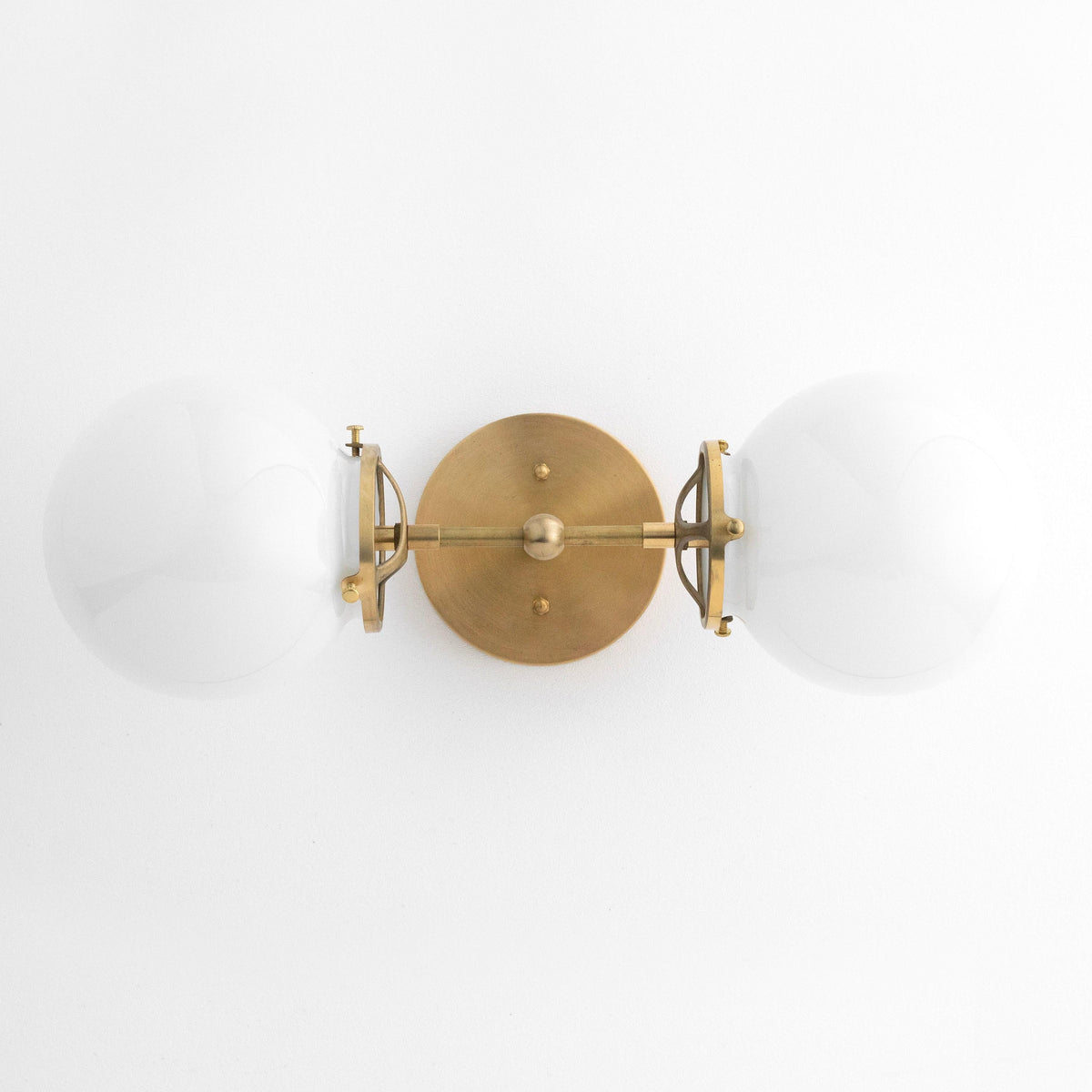Lumio Globe Art Deco Vanity Light - Opal Globe Bathroom Sconce - 18″ / 45.7 cm / Opal Glass / Raw Brass