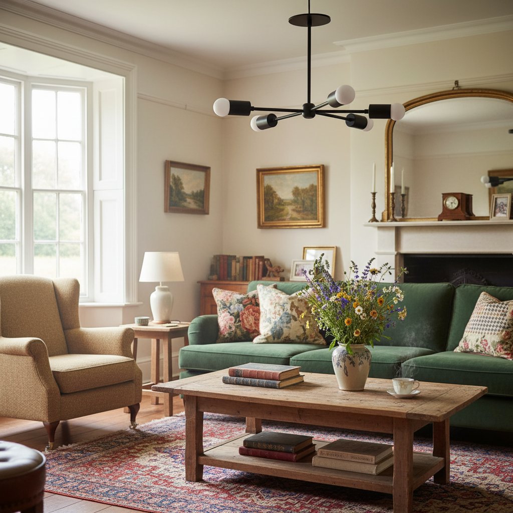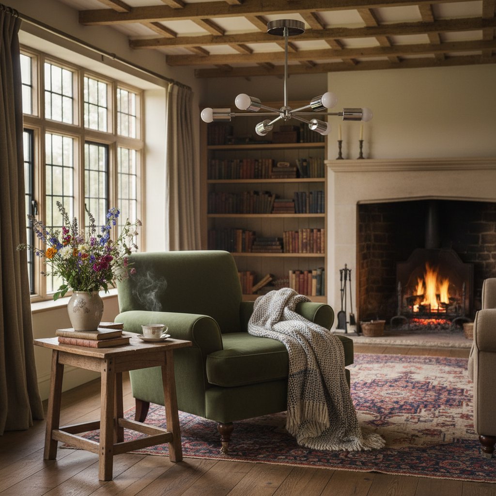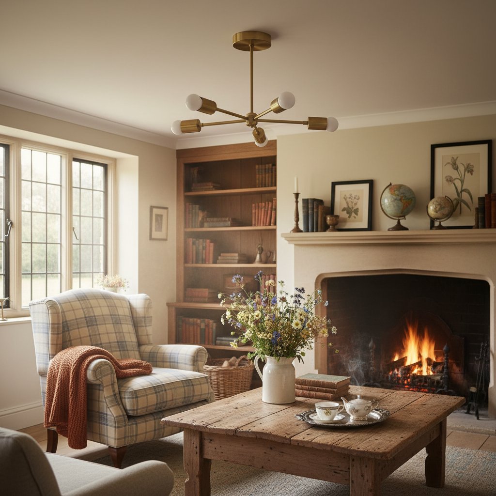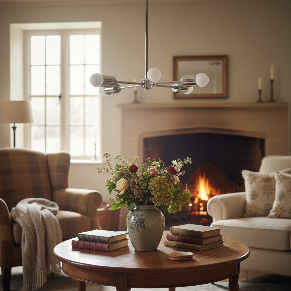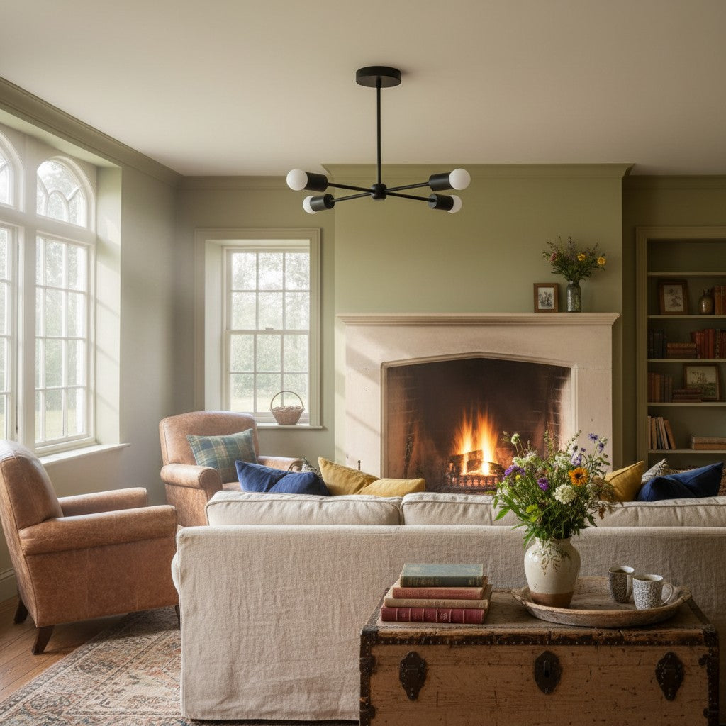 Mobilux Line Mid Century Gold Sputnik Chandelier - Geometric Brass Fixture - 4 Heads:9″ / 22.86 cm / Antique Brass