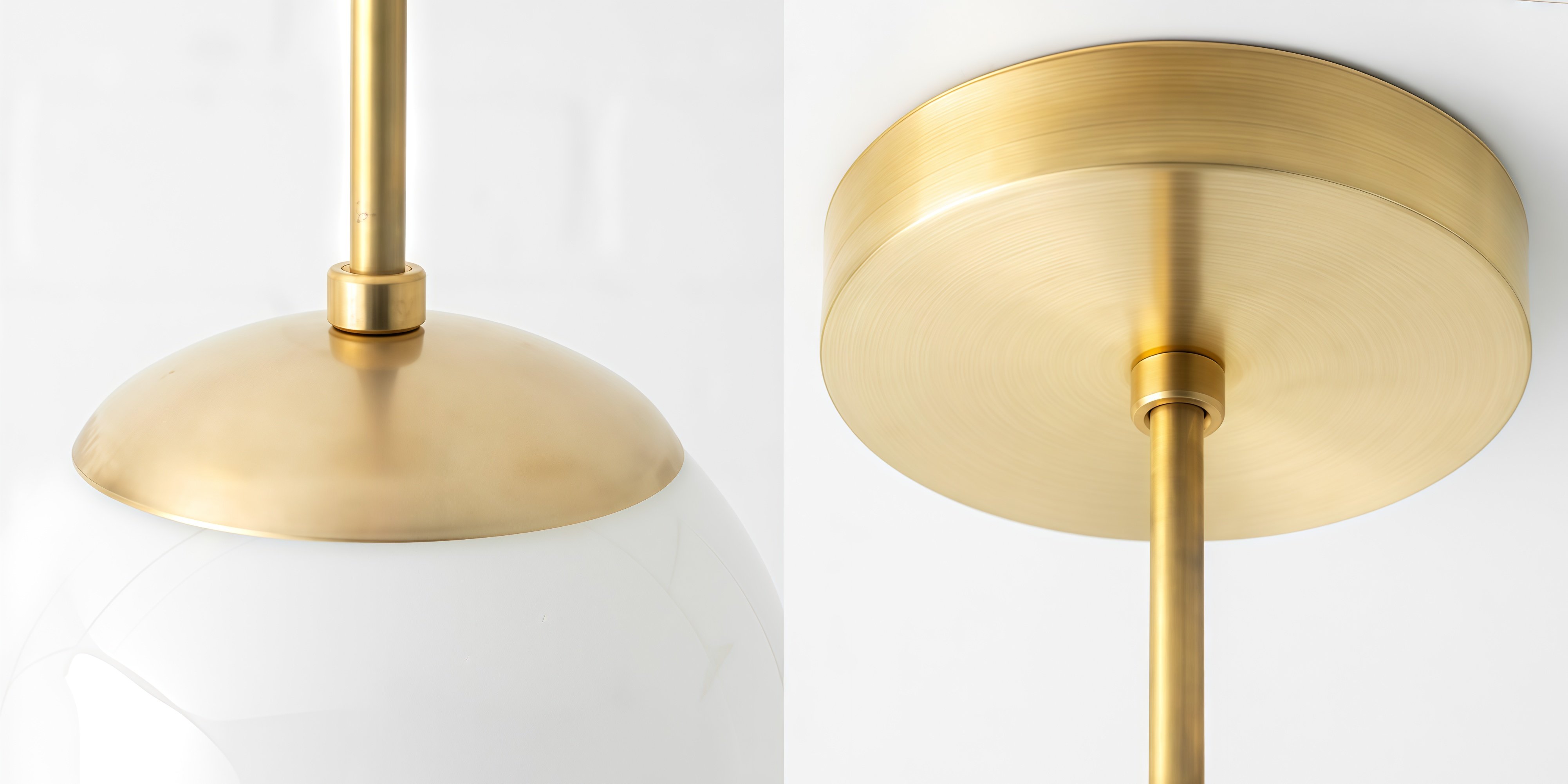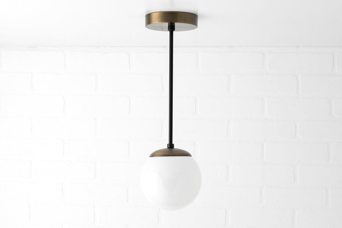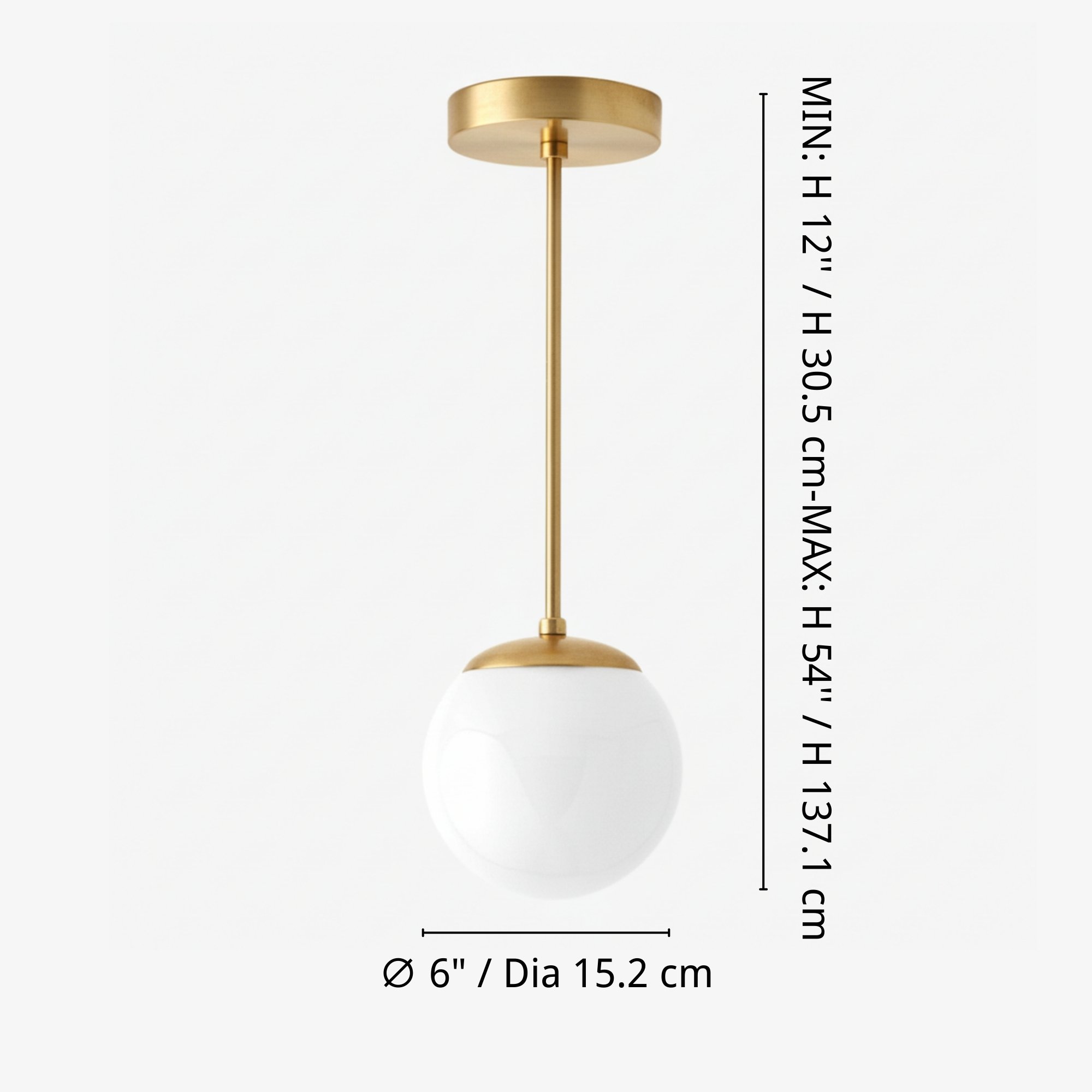 Glorica Glass White Globe Pendant Light - Mid Century Modern Glass Hanging Fixture - Raw Brass / 12'' / 30.5 cm / Opal White