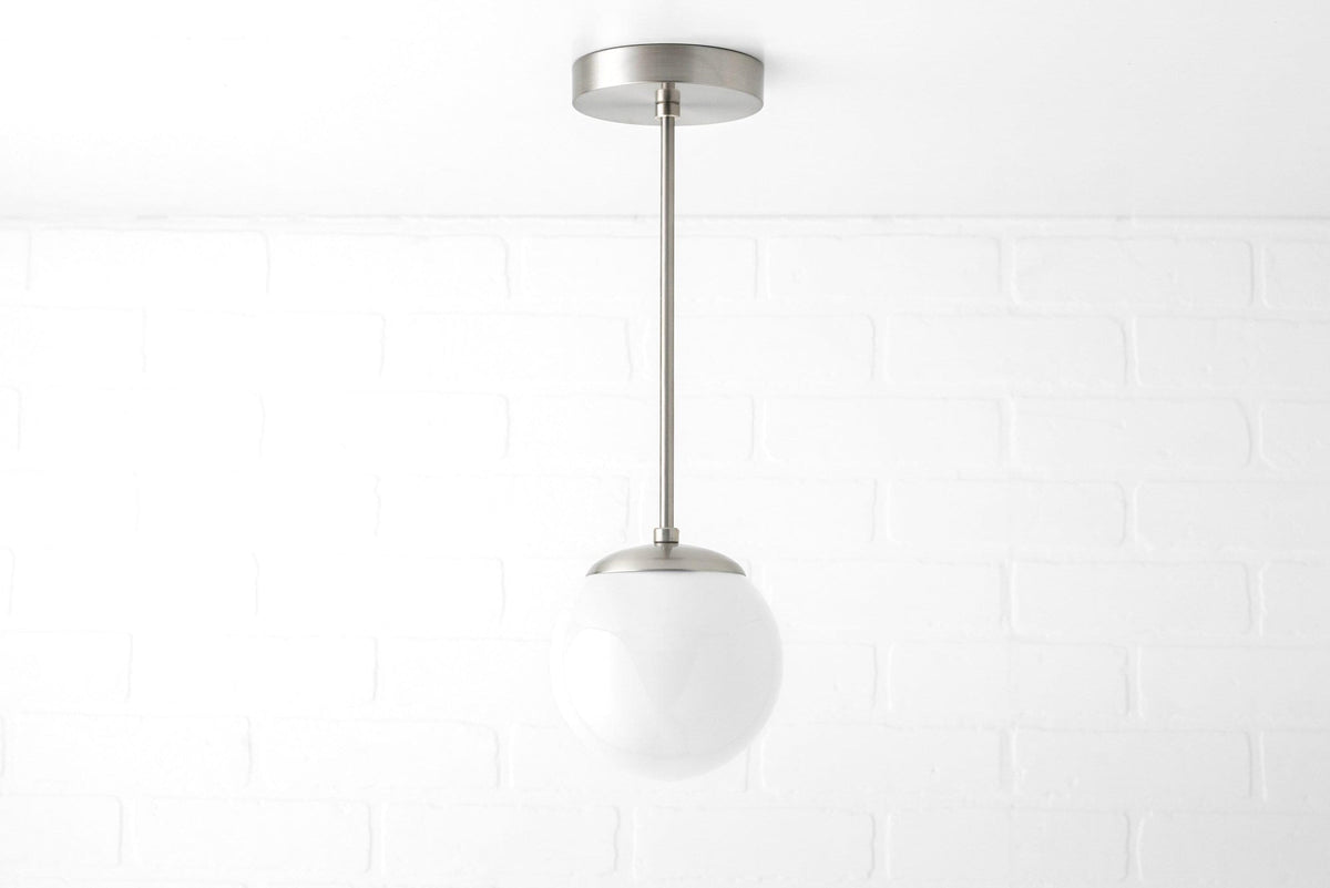 Glorica Glass White Globe Pendant Light - Mid Century Modern Glass Hanging Fixture