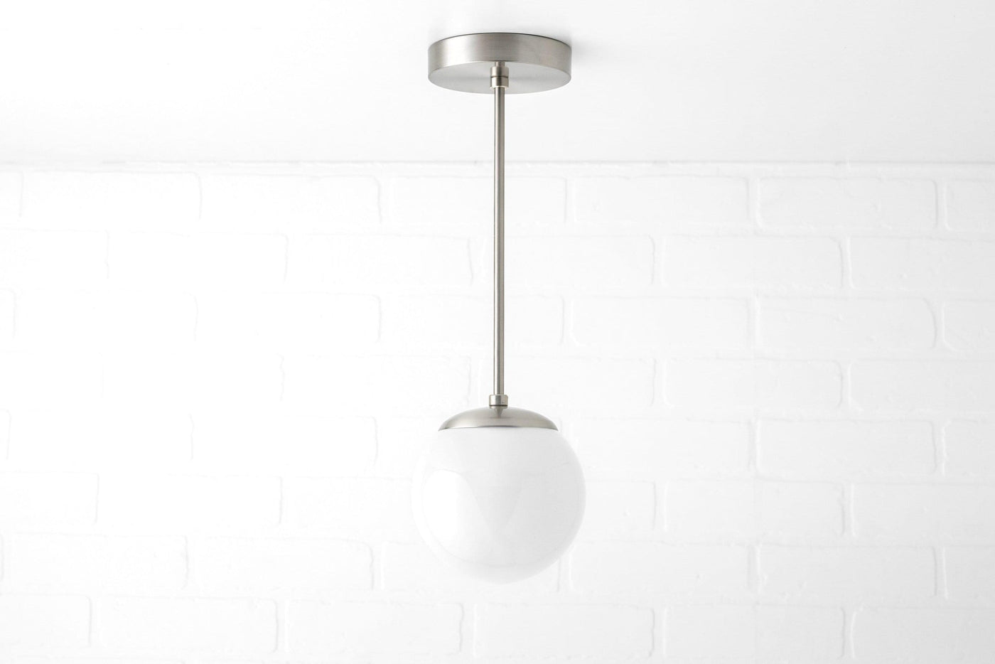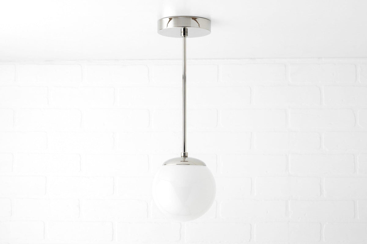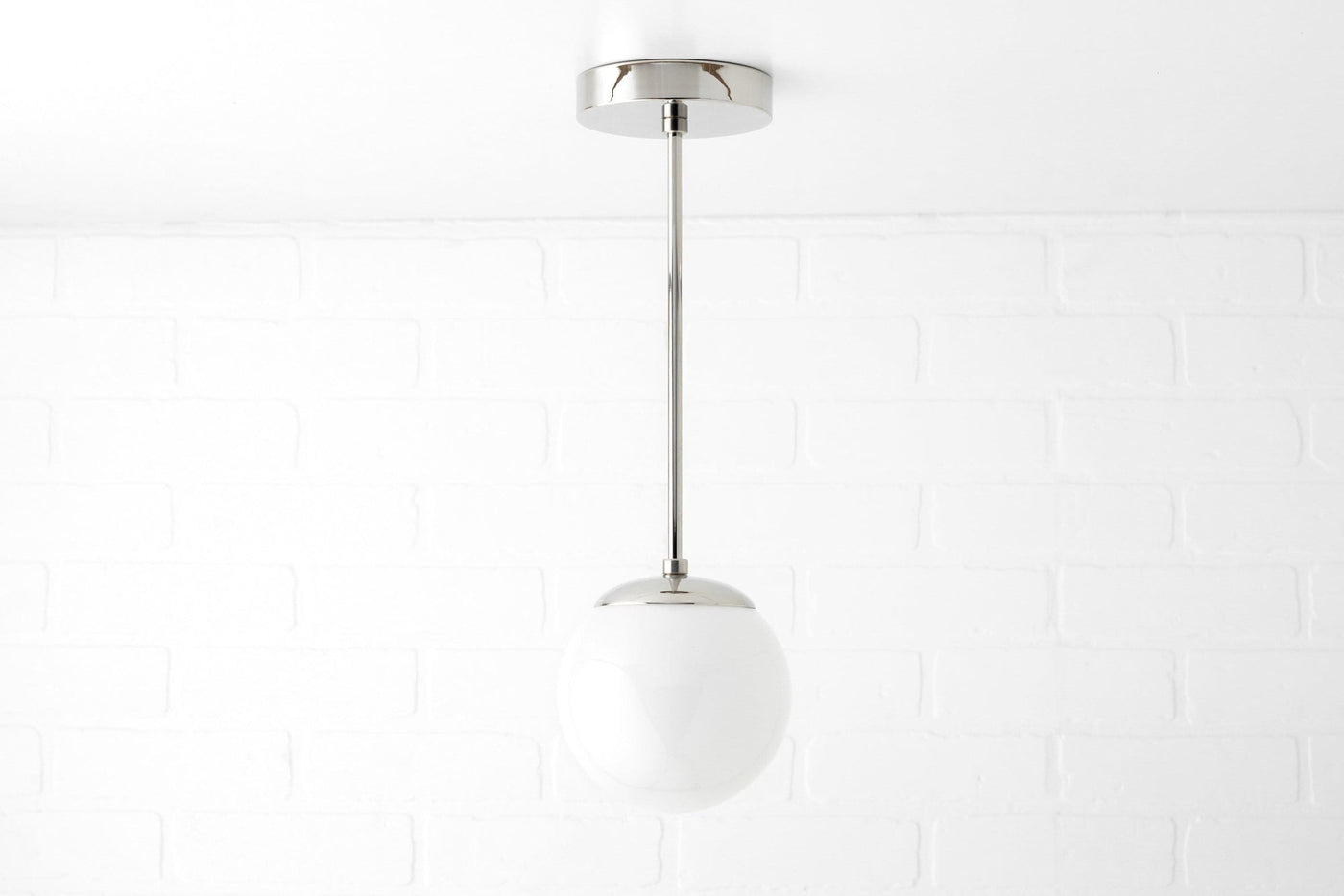 A classic mid-century pendant light with a smooth white gloss glass globe. Its neckless globe design creates a clean, refined...