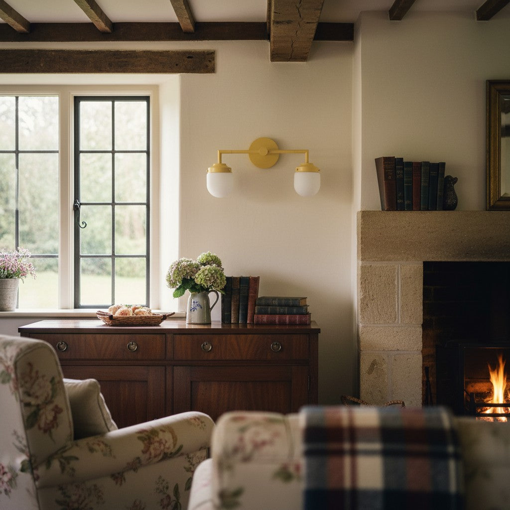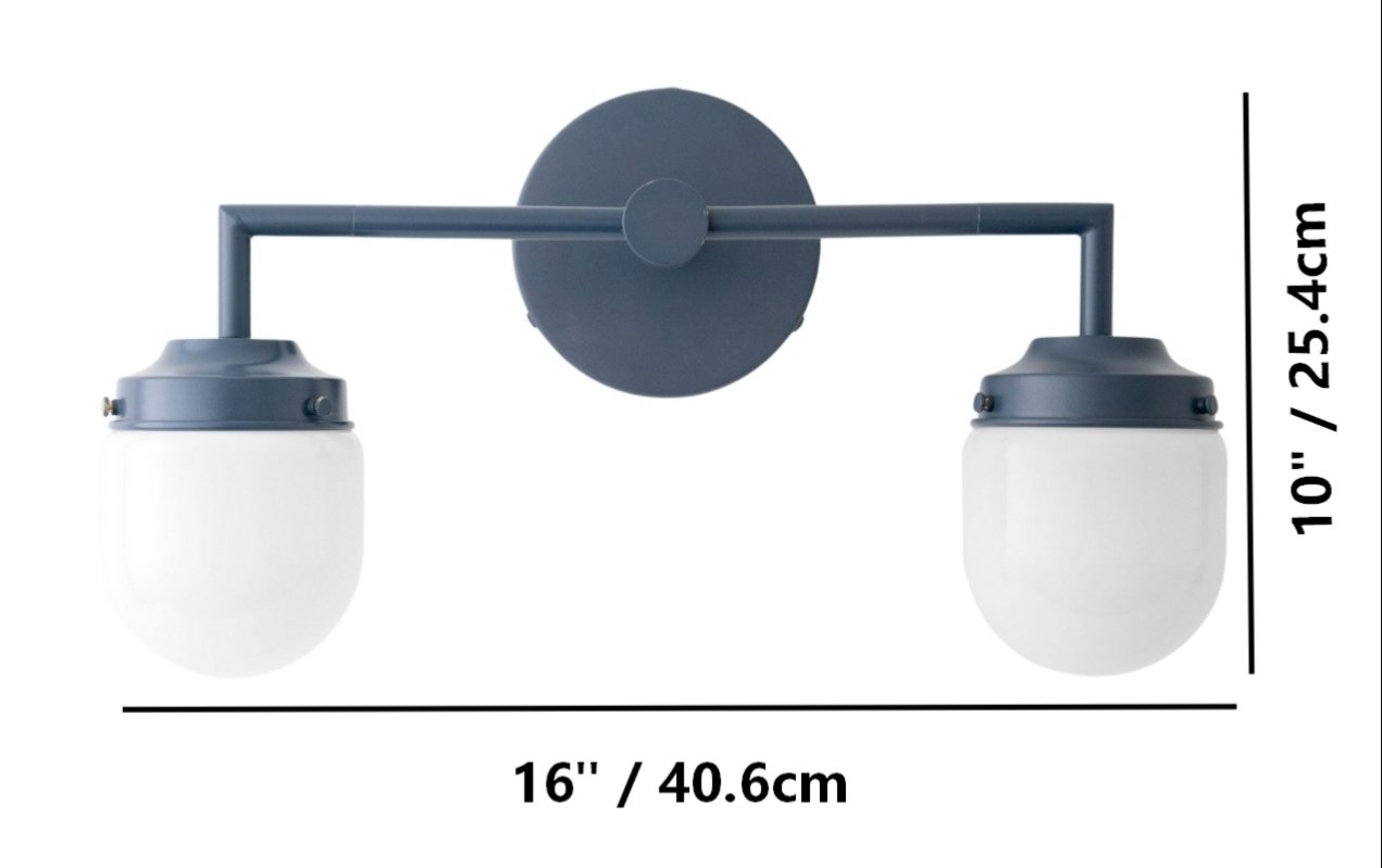 Opalume Glass Double Vanity Light - Vintage Style Bathroom Double Wall Lighting - 2 Head: 16" / 40.6 cm / Coal Blue / Opal Glass
