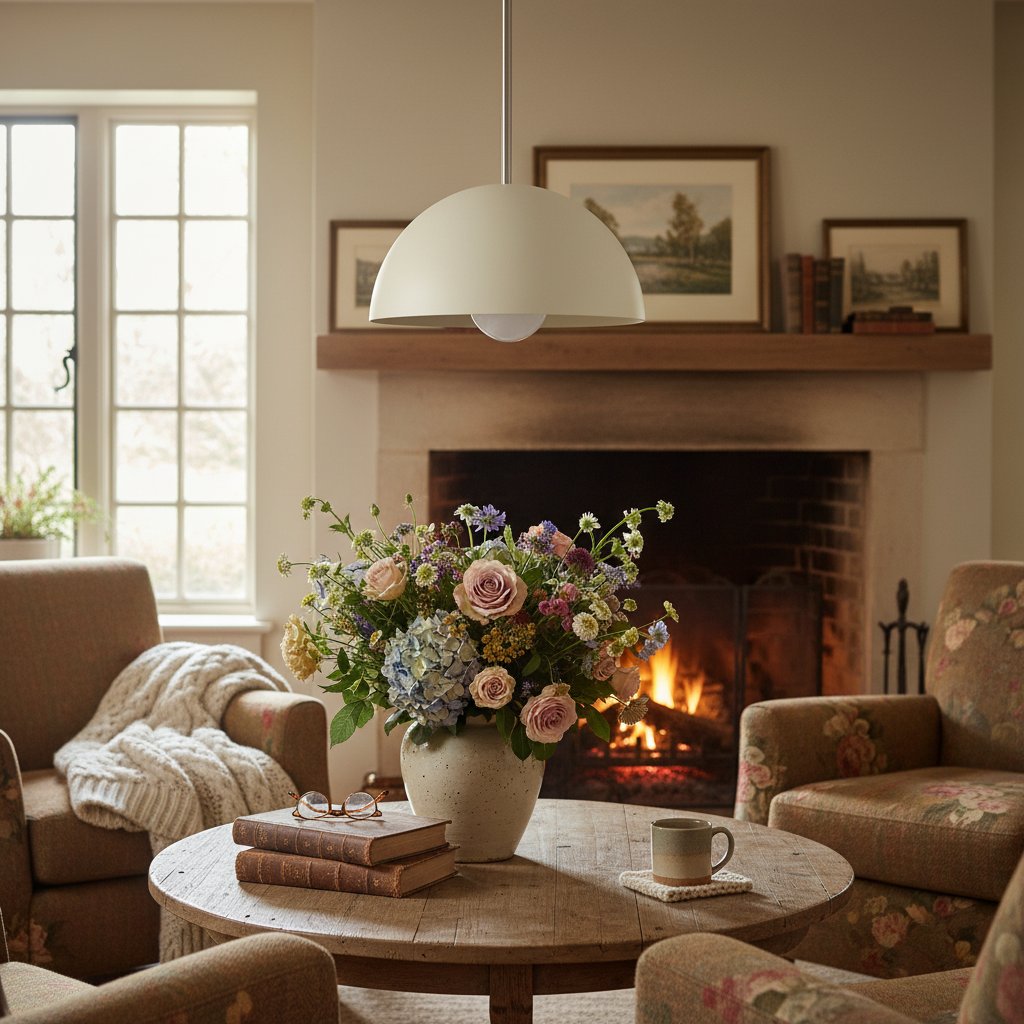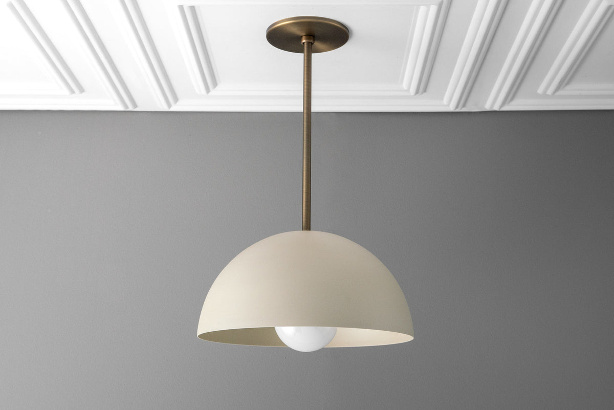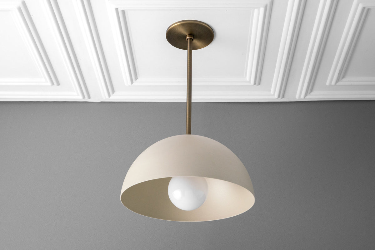 A neutral dome pendant that serves as modern metal accent lighting. The combination of a soft, dome - shaped shade and a metallic stem/ceiling plate creates a balanced look that fits well in various spaces. Whether used in a cozy living room nook, a chic bedroom, or a contemporary office, this pendant adds a layer of sophistication. Its versatile design ensures it can adapt to different color schemes and design aesthetics with ease.