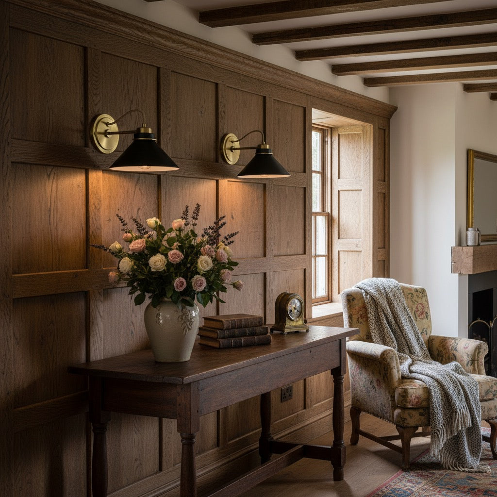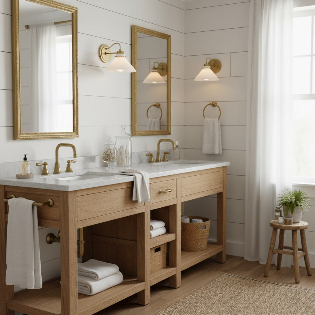 Aurenza Sconce – Farmhouse Wall Light with Metal Accents for Cozy Spaces - 8″ / 20 cm / Champagne Bronze Metal / Milk Glass