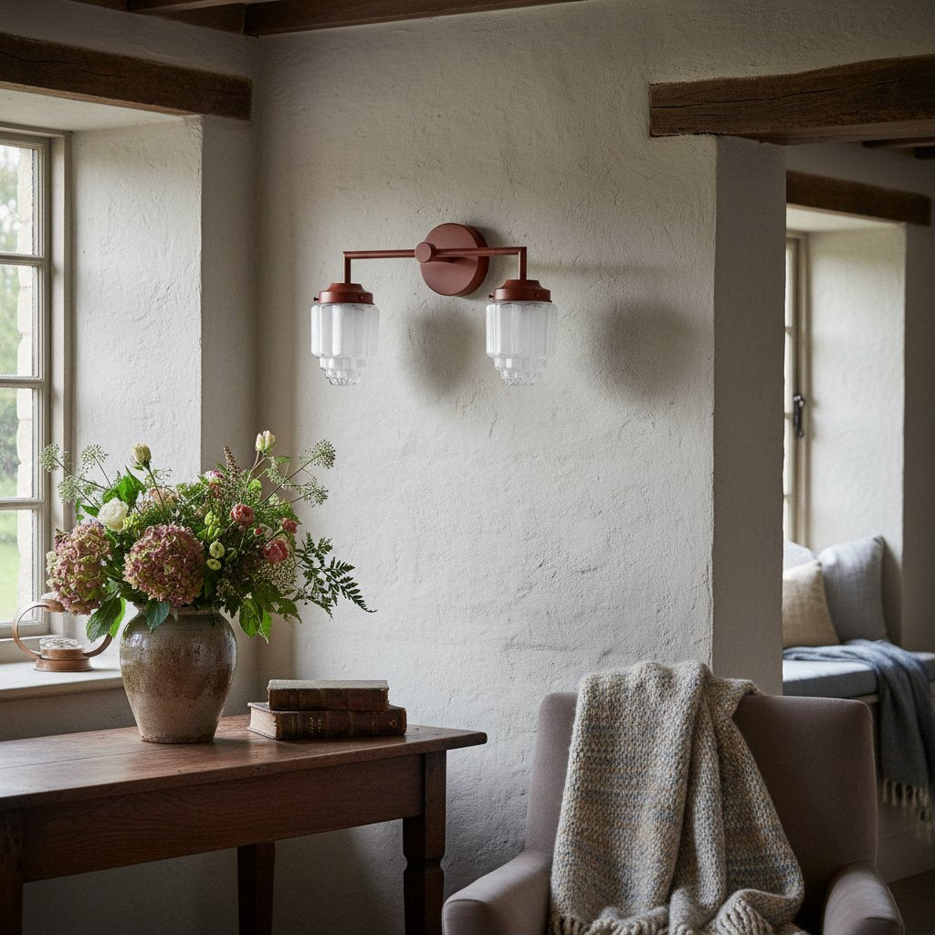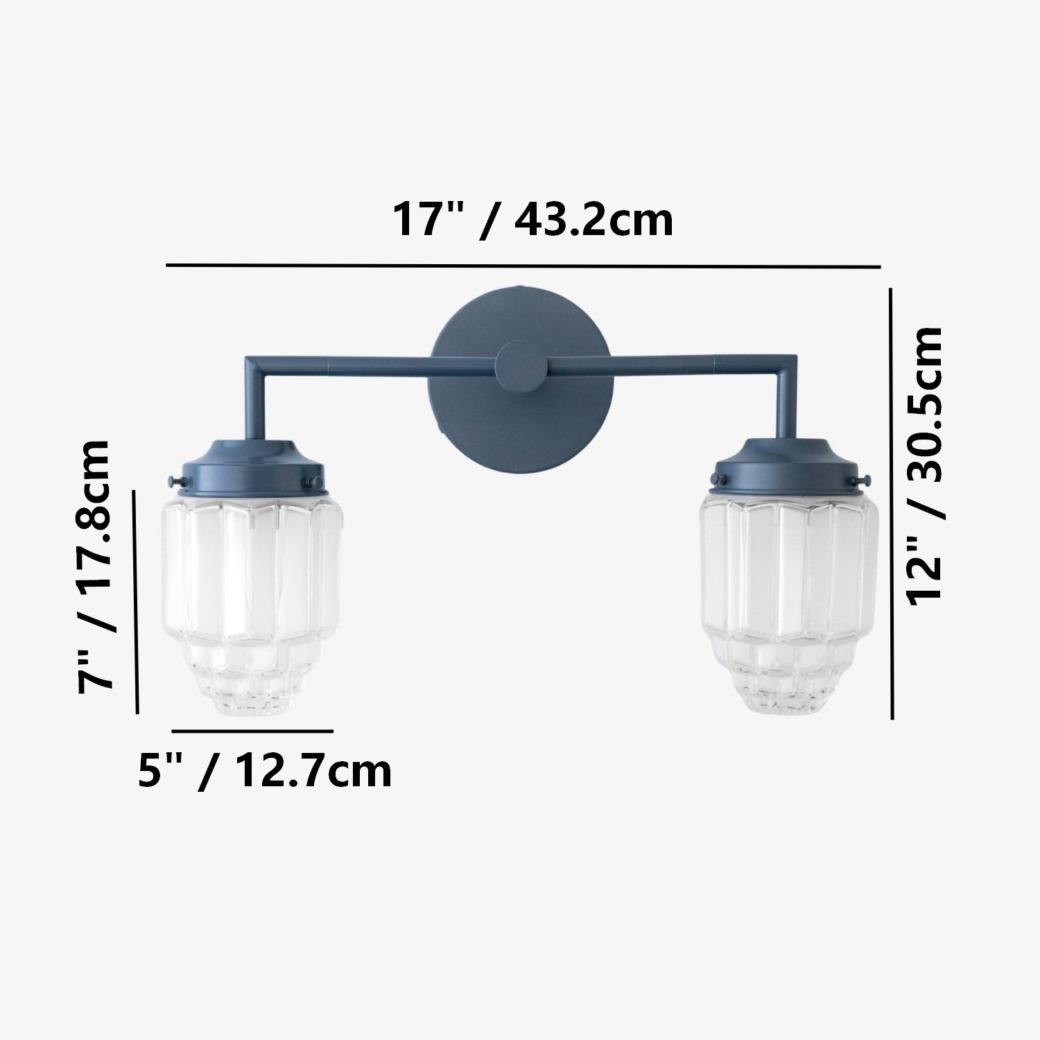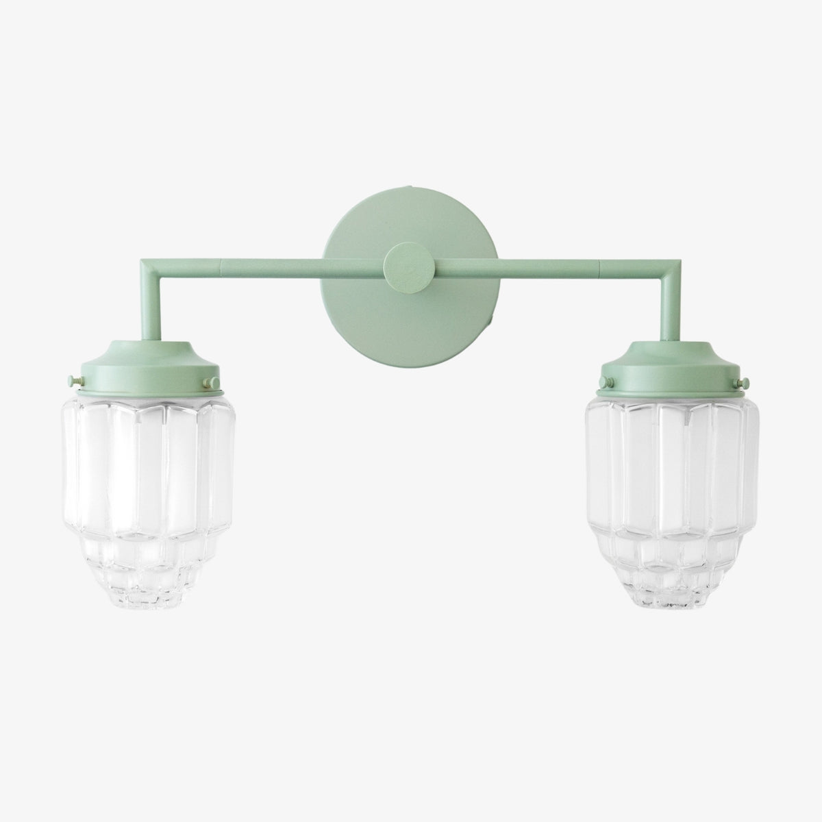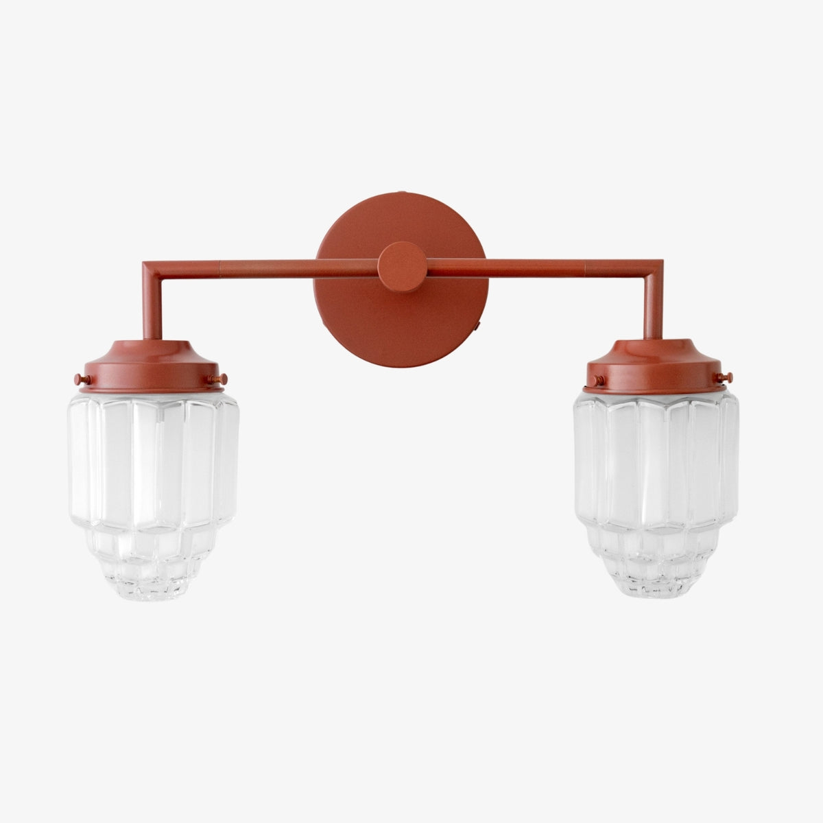 Tierlux Glass Art Deco Vanity Light - Colorful Skyscraper Globe Wall Fixture - 2 Heads: 17" / 43.1 cm / Mauve / Clear Glass