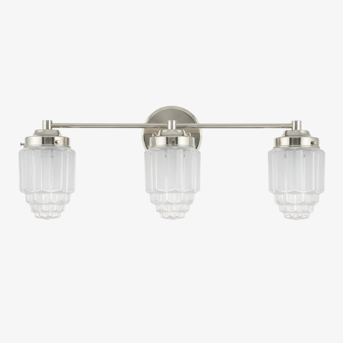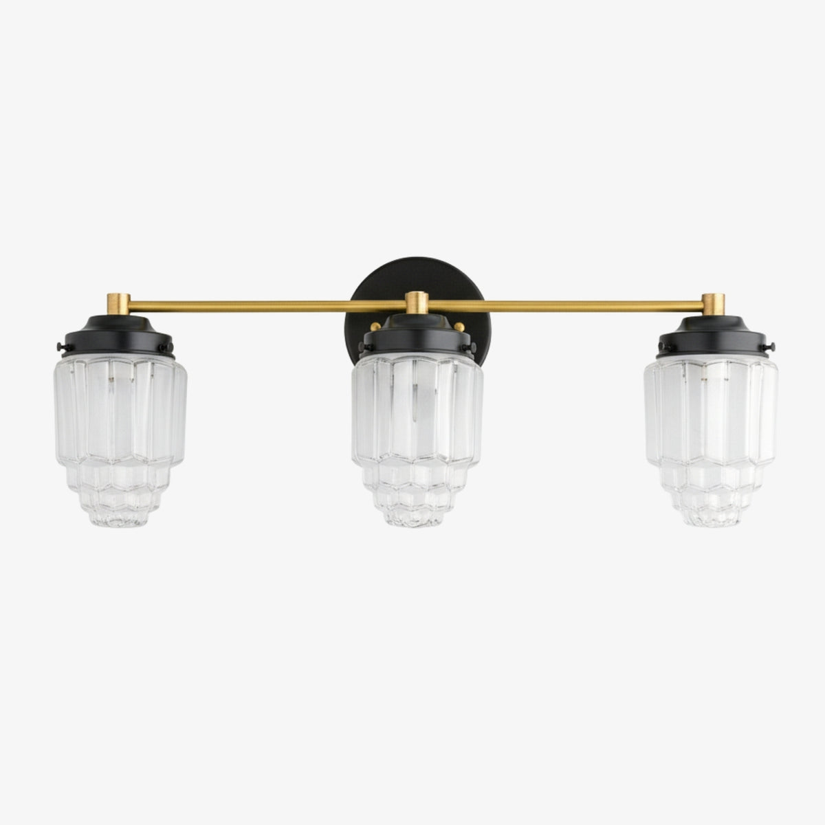 Tierlux Glass Vanity Light - Art Deco Bathroom Fixture with Skyscraper Shades
