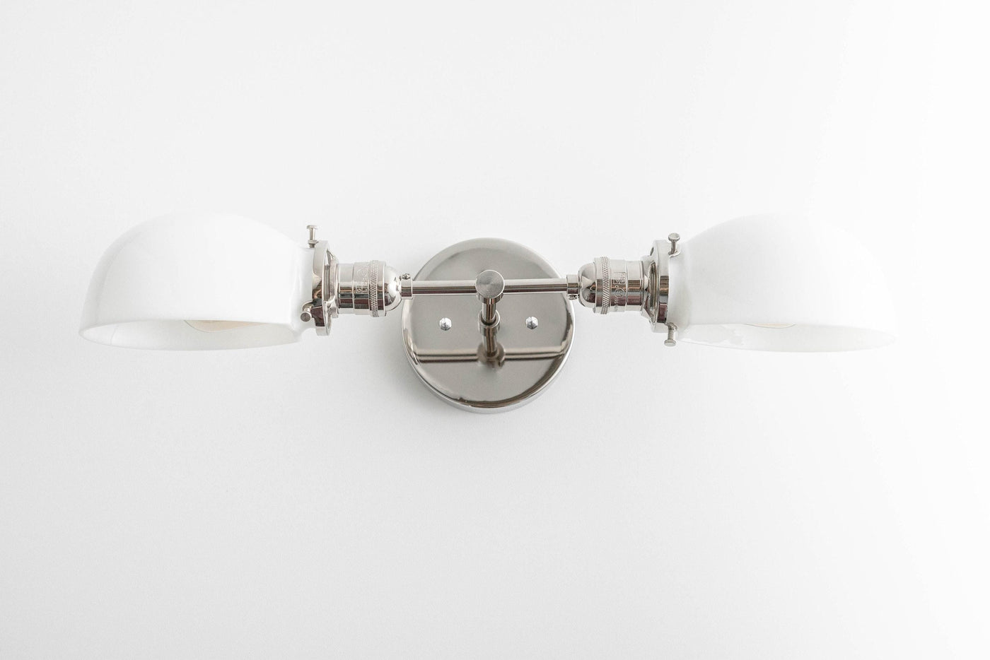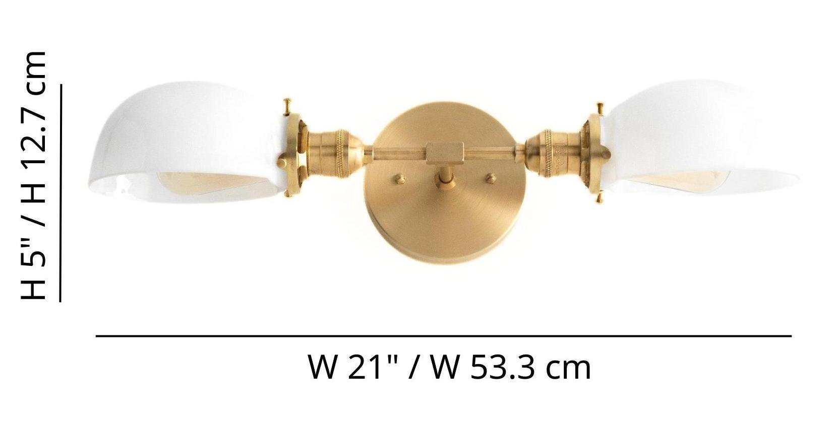 Ornato Luxe Mid-Century Vanity Light - Brass Bathroom Fixture with Opal Glass - 2 Heads: 21″ / 53.3 cm / Raw Brass / White