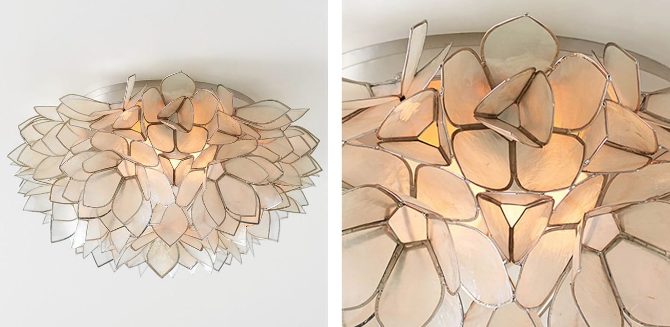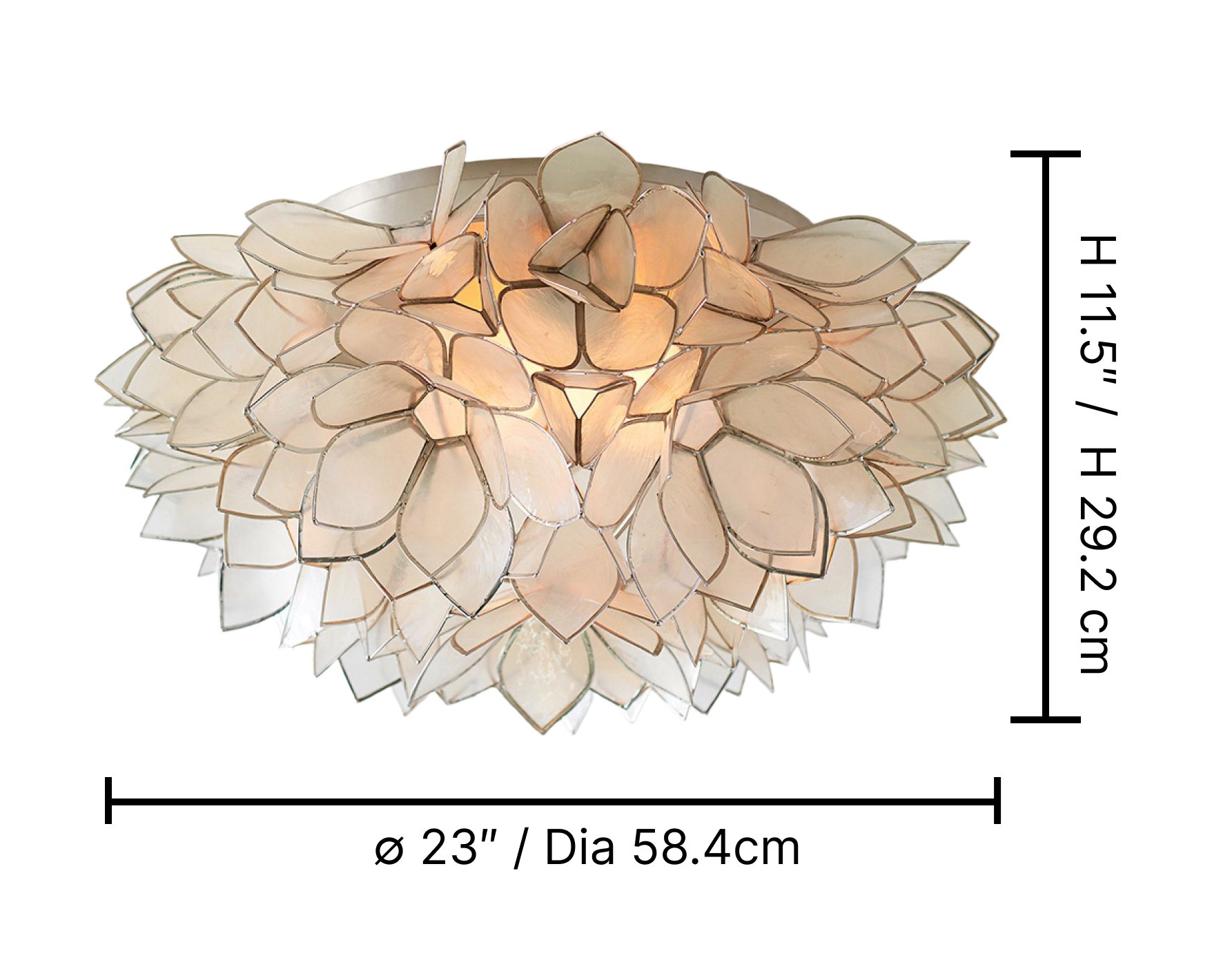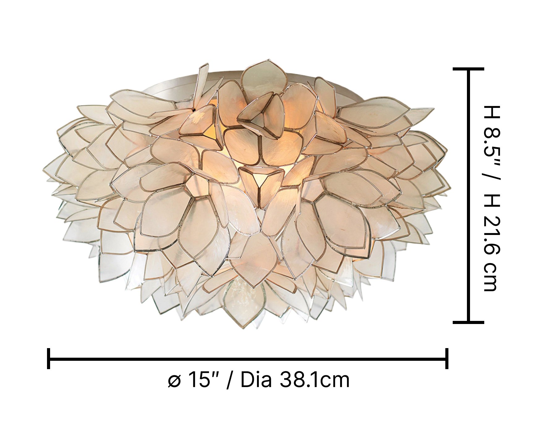 Florina Petal Flush Mount Light – Decorative Shell Petal Ceiling Fixture - Small: 15″ / 38.1 cm / Antique Silver / White