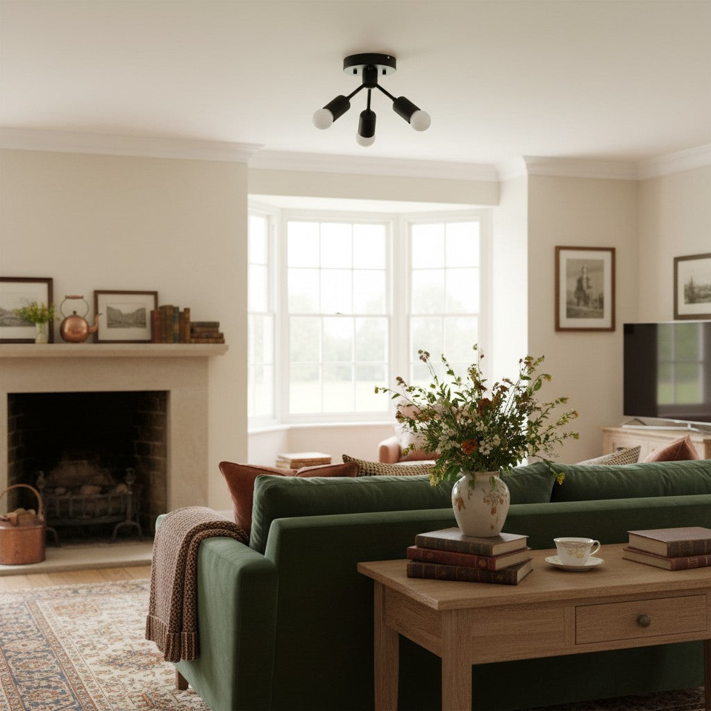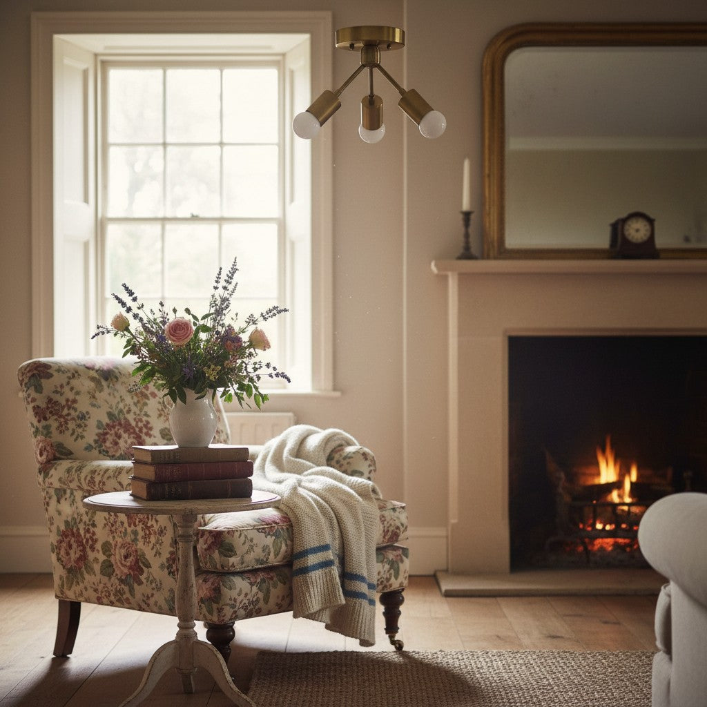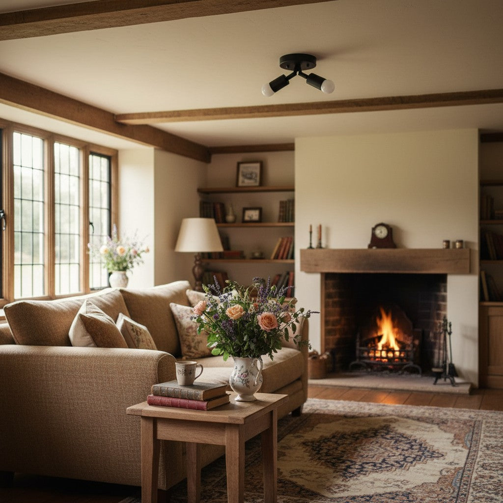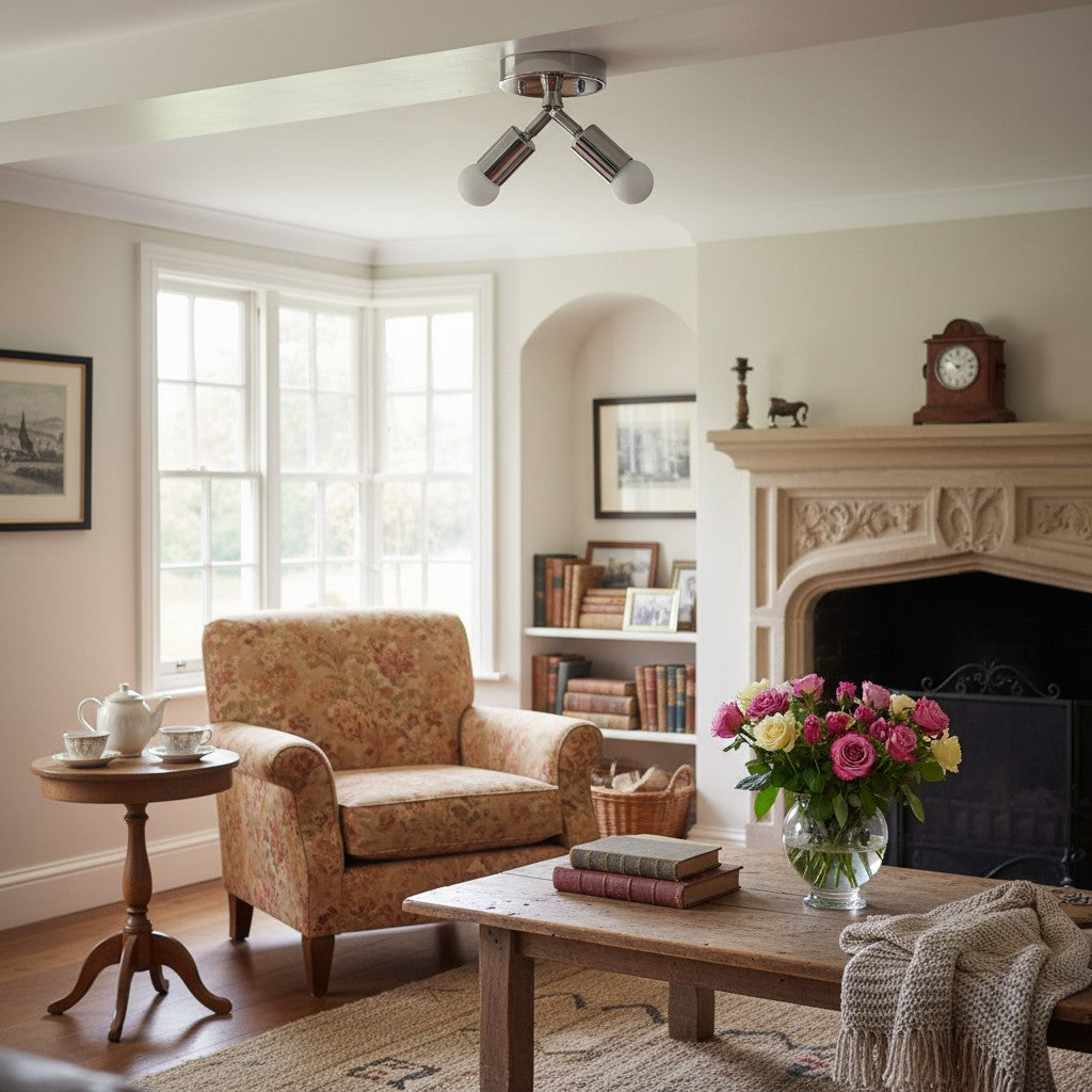 Mobilux Line Modern Brass Flush Mount - Minimalist Gold Ceiling Light for Bedroom - 2 Heads/14"/36cm / Polished Nickel