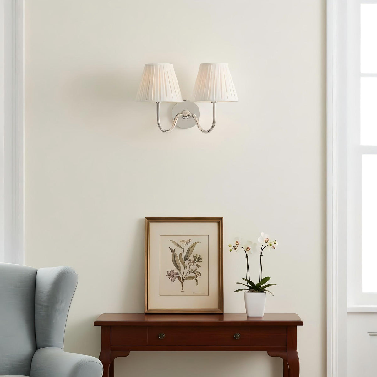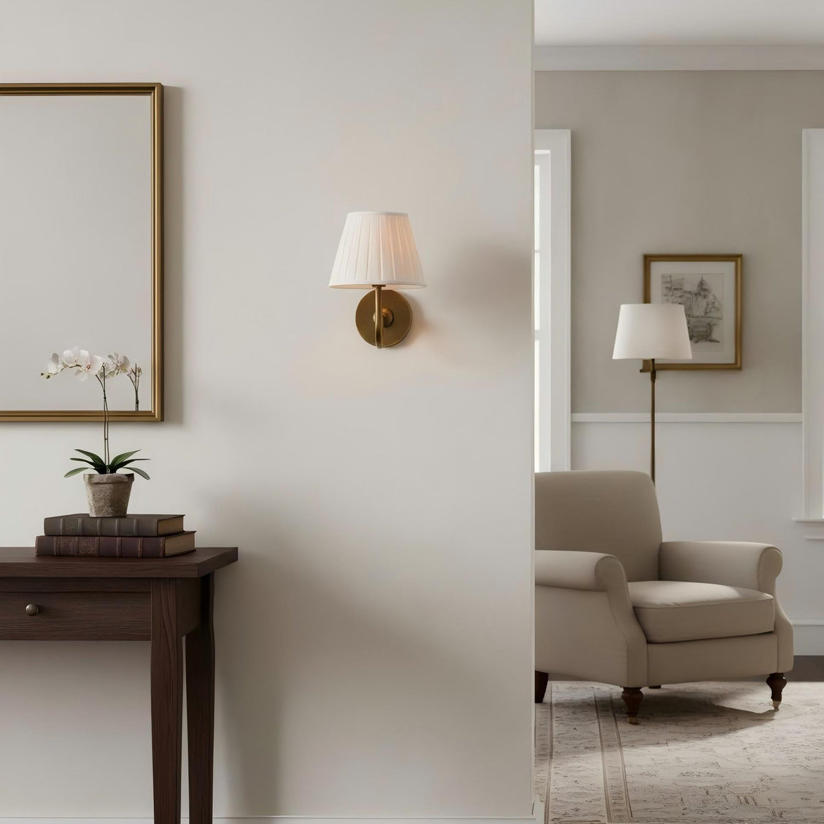 Luvora Pleated Linen Wall Lamp – Vintage Brass Wall Light for Living Rooms