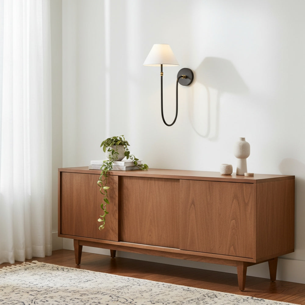 Calin White Linen Shade Wall Light - Classic Iron Sconce for Hallway
