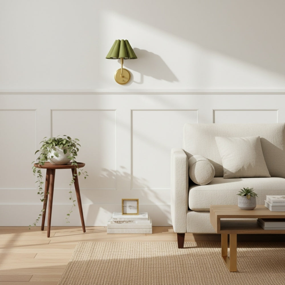 Capirise Metal Wall Sconce - Retro Scalloped Linen Light for Bedroom - Green / 9.75" / 23.8 cm