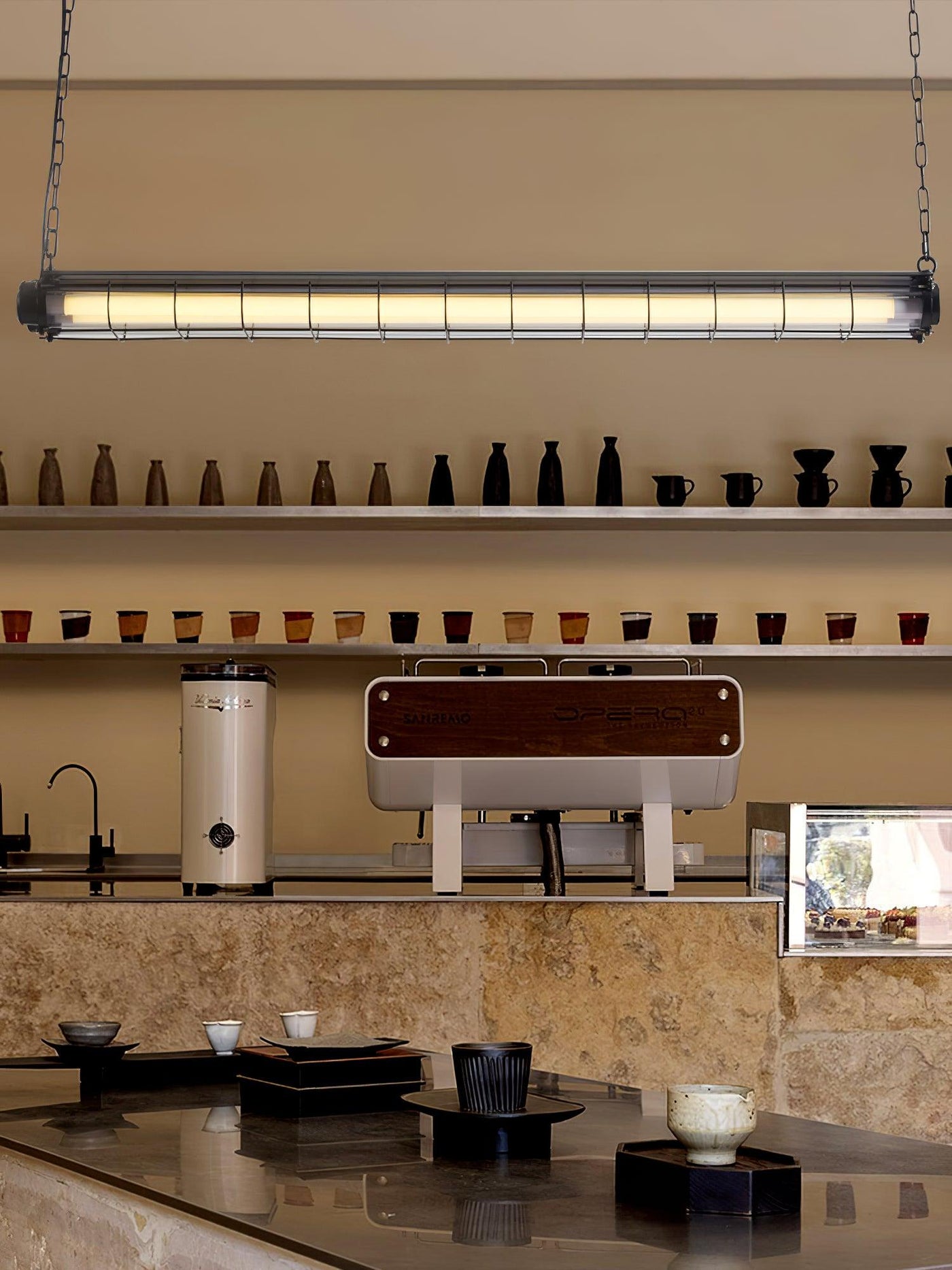 Glass Linearity Chandelier Artisan Clear Cast Iron Metal Sleek Sparkling - L 48.8″ x W 4.3″ x H 5.5″ / L 124cm x W 11cm x H 14cm / Silver / Warm Light