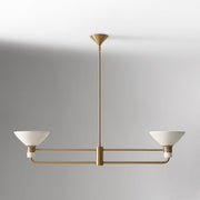 Calvor Linear 2 Light Chandelier - Porcelain Shades and Bronze Finish - Antique Brass / W 44’‘ x H 44.6’‘ / W 111.8 cm x H 113.3 cm