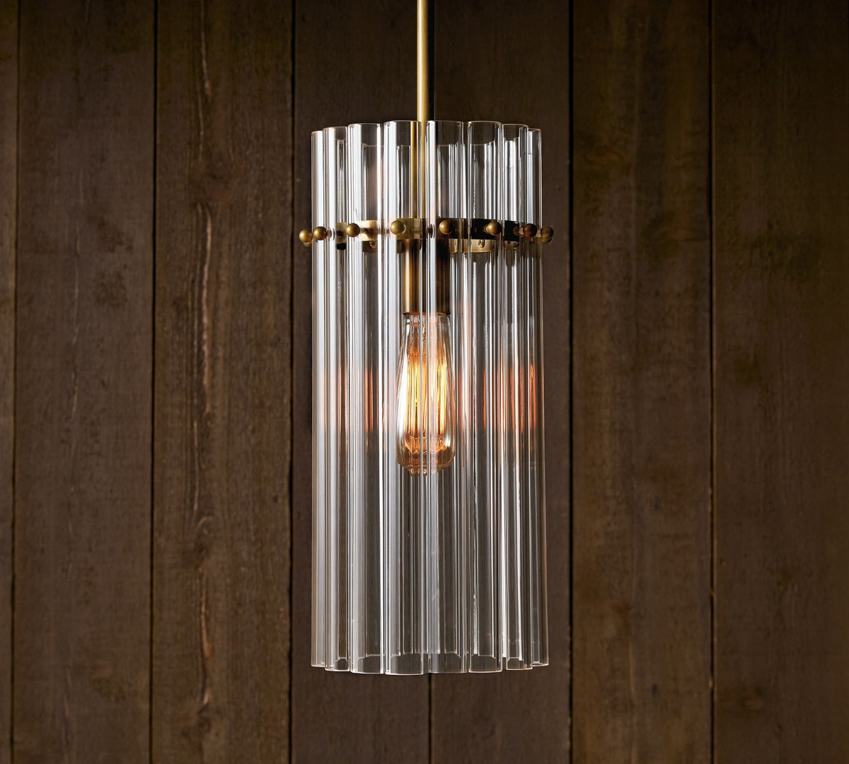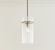 Lumora Crystal Pendant Light – Elegant Tumbled Brass & Cut Glass - A: ∅ 7″ x H 15″/ Dia 18 cm x H 38 cm / Tumbled Brass