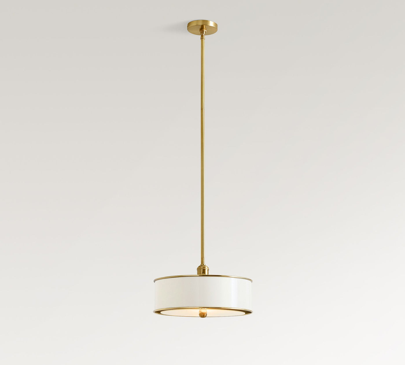 Forvara Metal Drum Pendant Light - Farmhouse Style Kitchen Island Lighting - White / ∅ 15″ x H 59″ / Dia 38.1 cm x H 149.9 cm