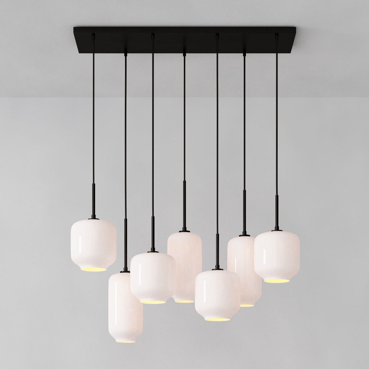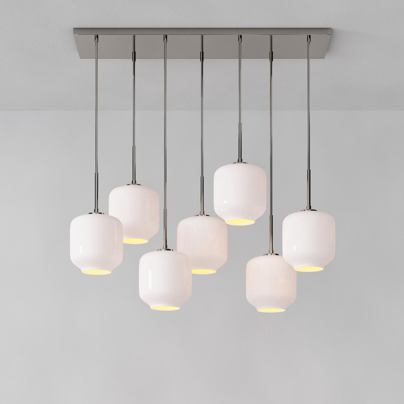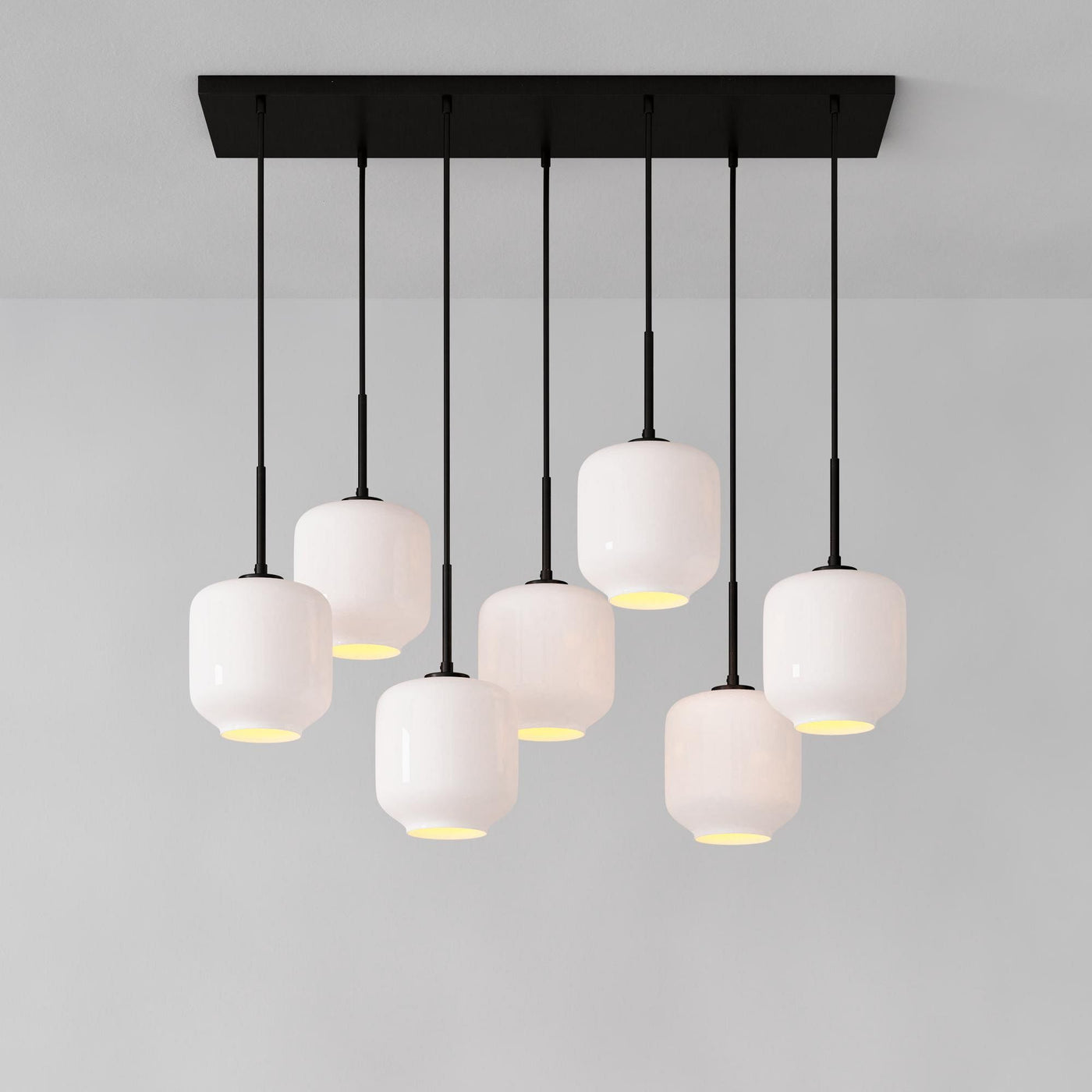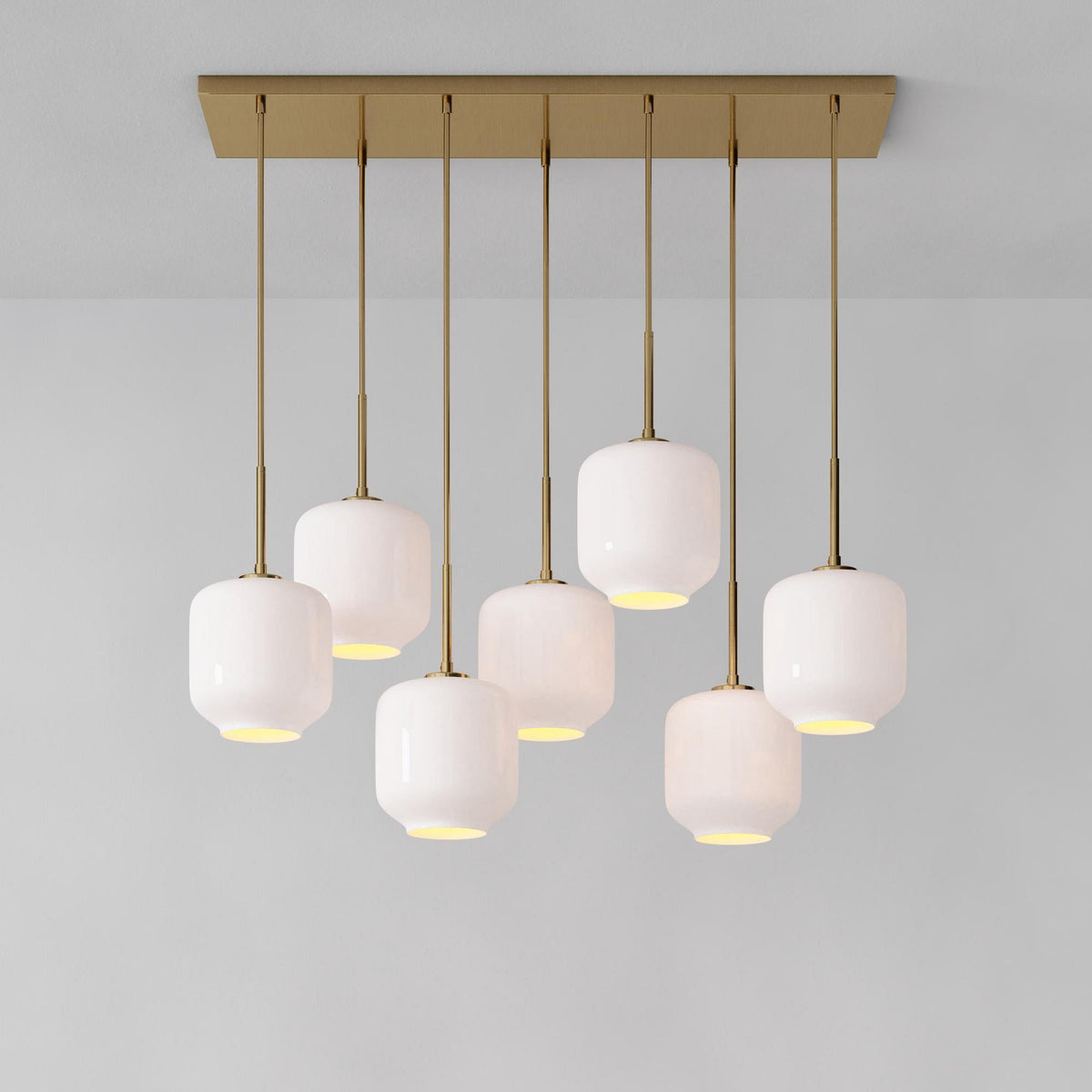Lumivelle Sculptural 7-Light Chandelier – Adjustable Height Modern Glass Pendant - 7.5" / 19.1 cm / Antique Brass / Milk Glass