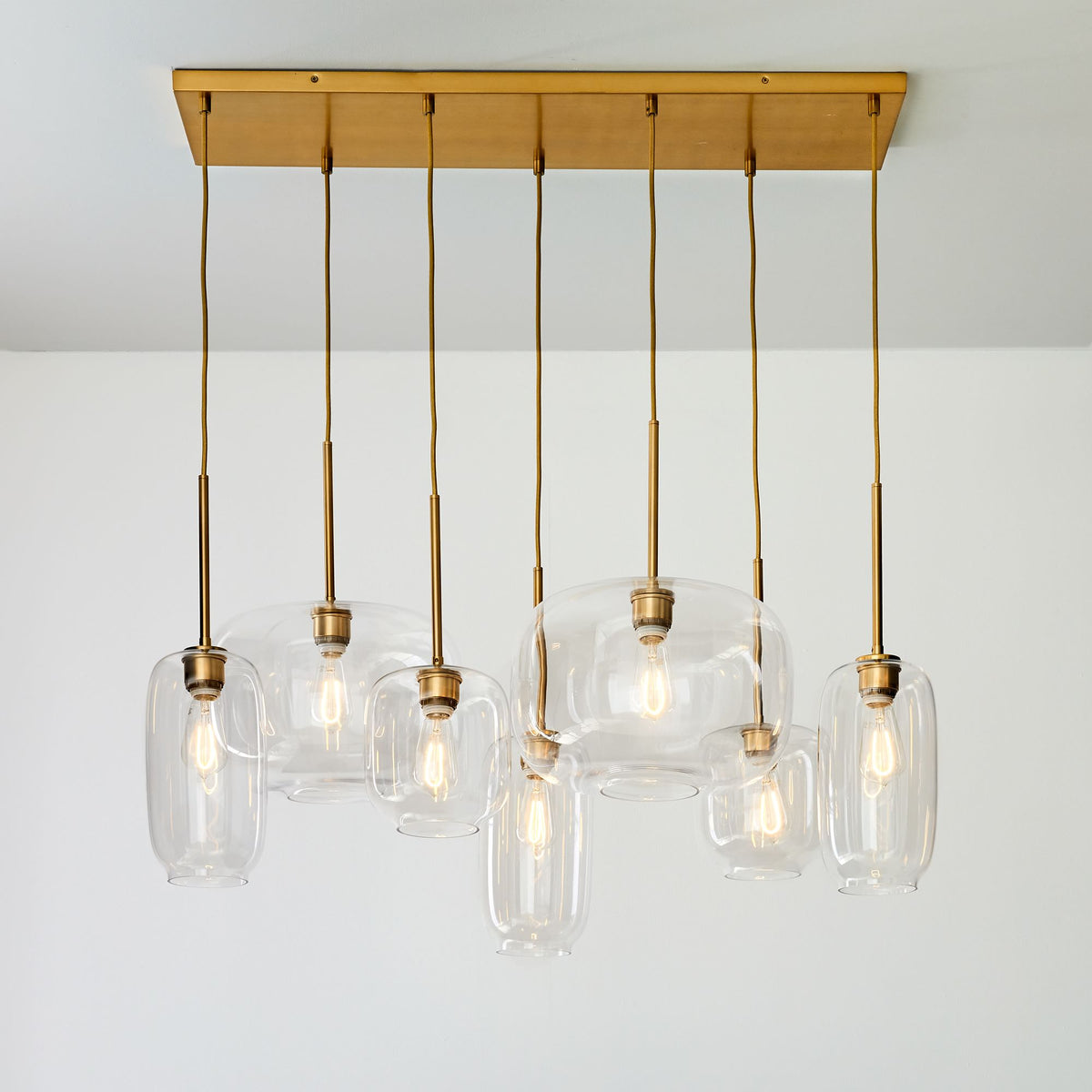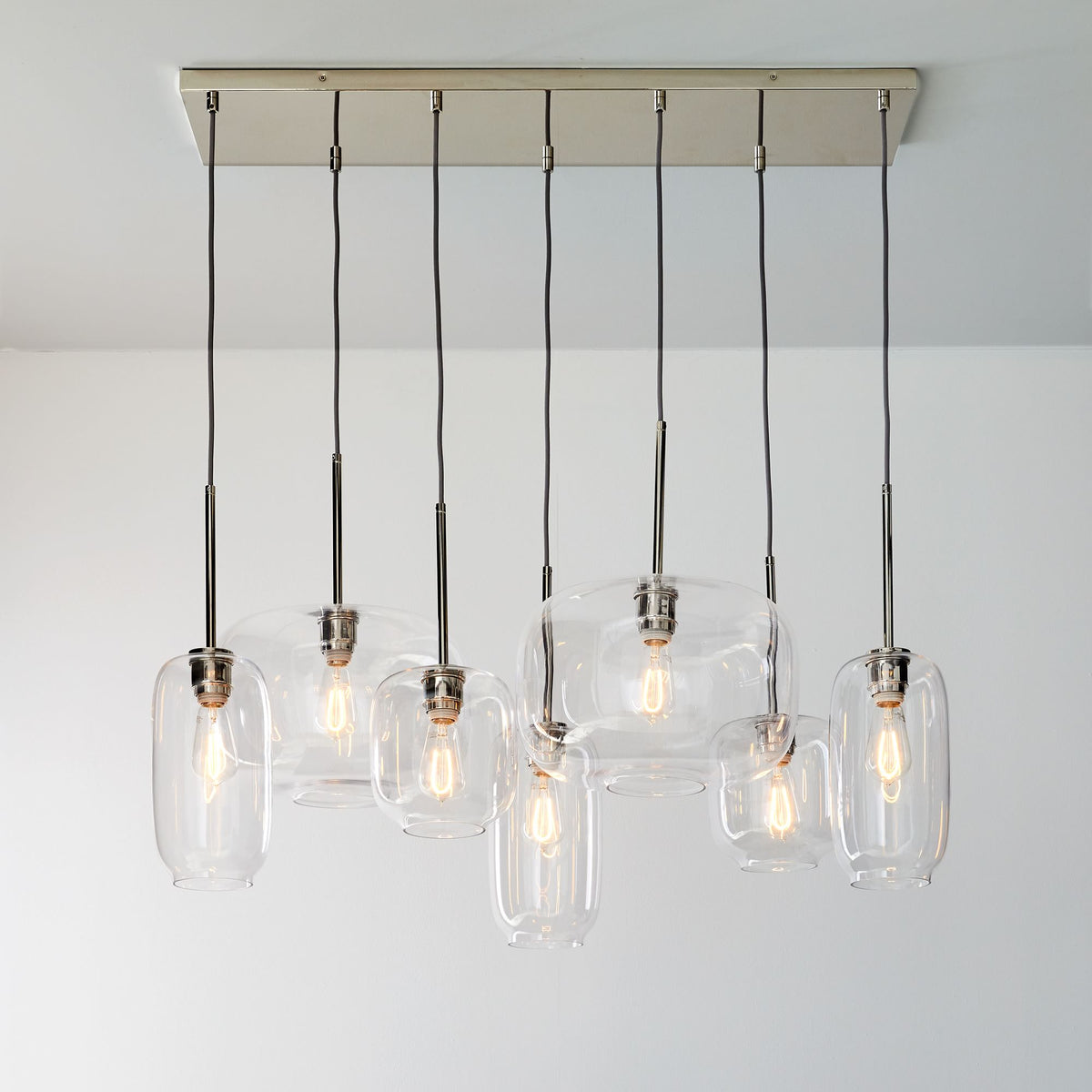 Lumivelle Sculptural 7-Light Chandelier – Adjustable Height Modern Glass Pendant