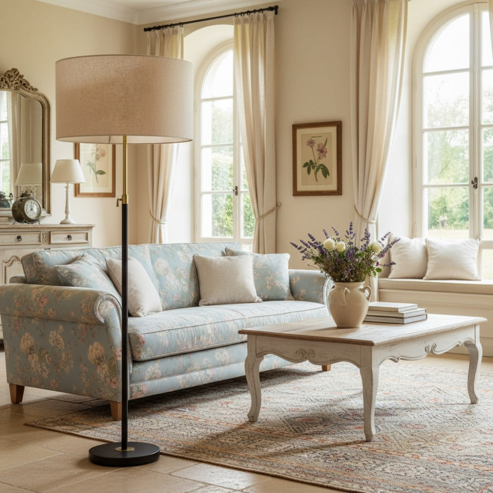 Mavora Linen Floor Lamp - Modern Adjustable Metal Lamp for Living Room - ∅ 7.87″ x H 23.62″ / Dia 20 cm x H 60 cm