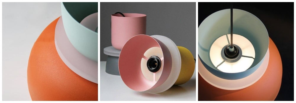 Macri Bowl Shade Pendant Light – Multicolor Double Layer Lamp - Dia 18 cm x H 26cm / Yellow + Light Pink