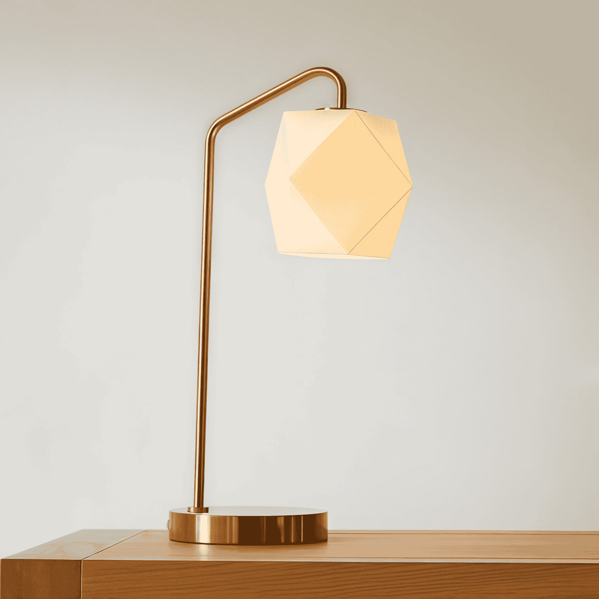 Talvior Luminous Geometric Faceted Glass Table Lamp - Milk Glass / Antique Brass / ∅ 21″ / Dia 53.3 cm