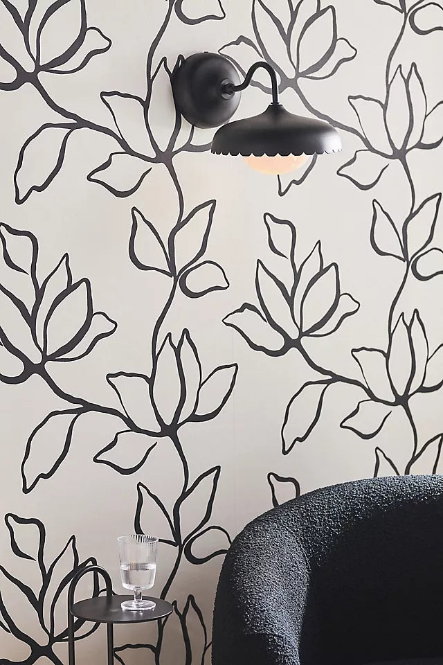 Rayla Outdoor Wall Sconce Light – Scallop Edge Modern Metal Design for Porch - Black / 14.5″ / 36.8 cm / 1 piece