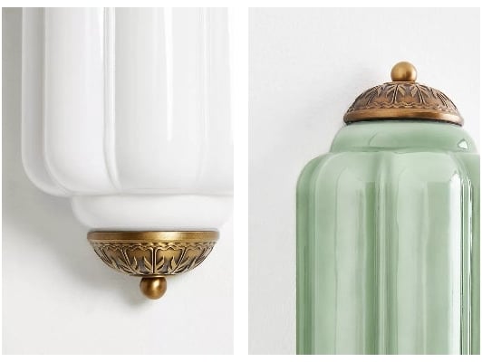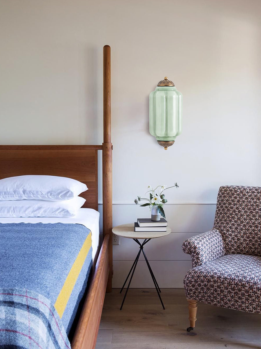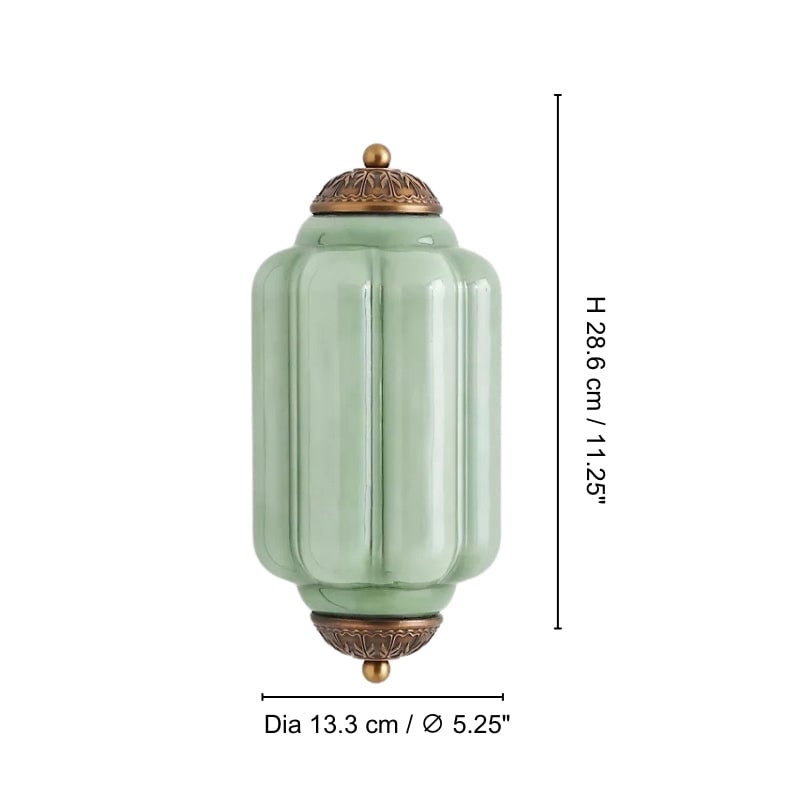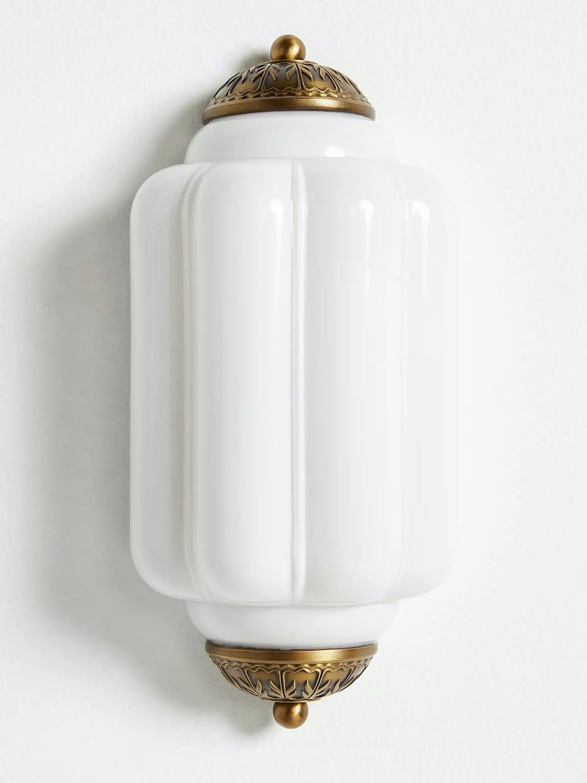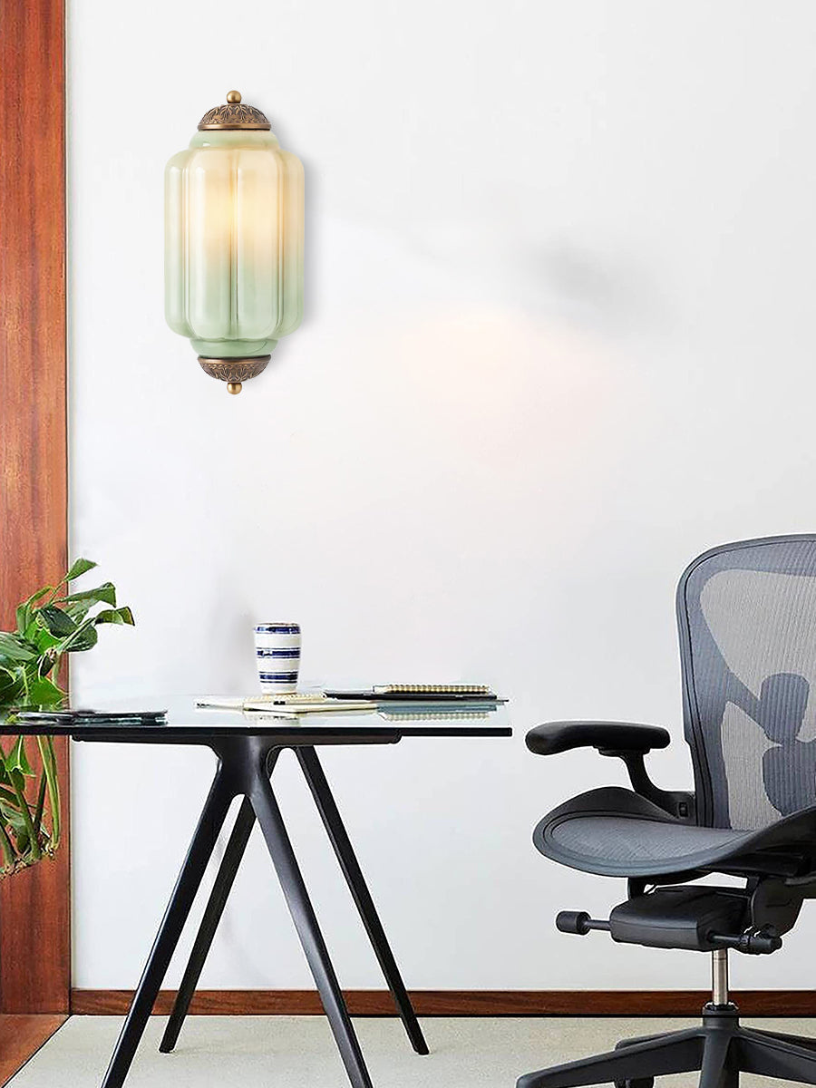 Vintage Milk Glass Wall Sconce Handcrafted Distressed Brass Light - Green / Dia 13.3 cm x H 28.6 cm / ∅ 5.25" x H 11.25"