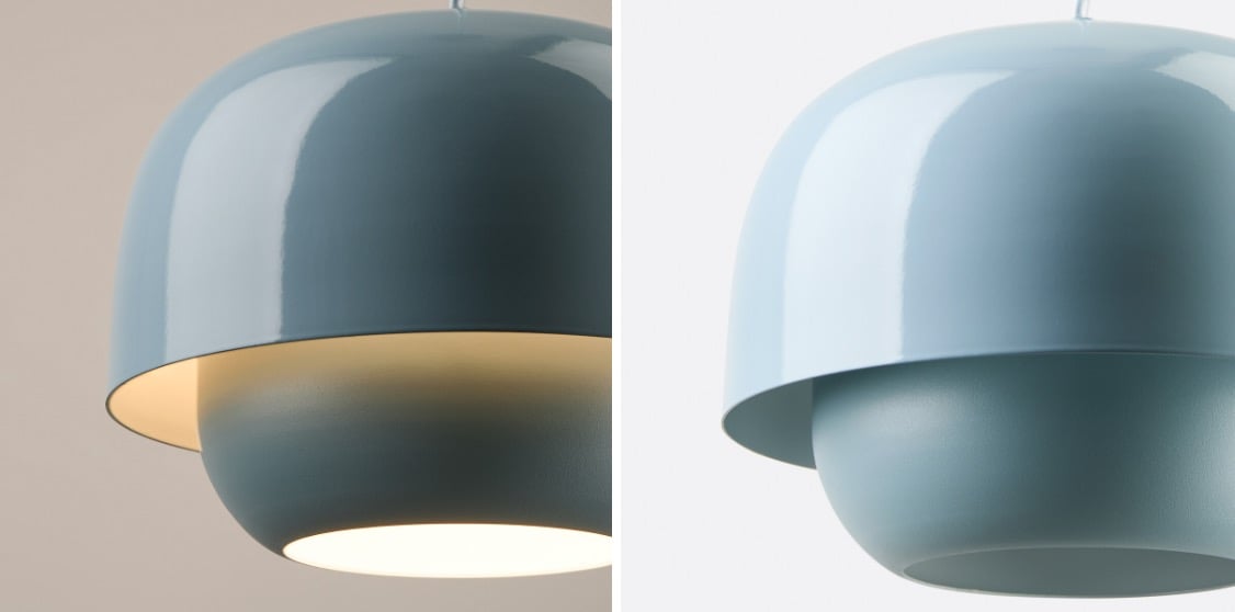 Clinco Retro-Modern Metal Pendant - Dual Shade Dome Light - 8.5" / 21.5 cm / Sky Blue