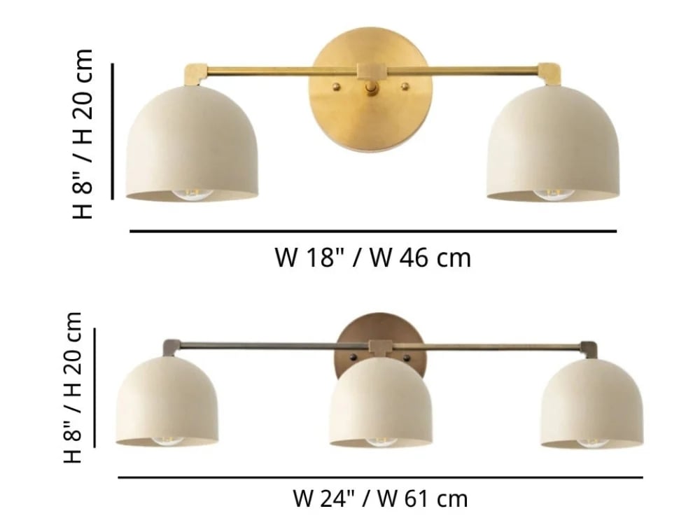 Available in both 2-light and 3-light configurations, this lamp features handcrafted dome shades that exude timeless elegance. The brass arm and wall mount add a touch of sophistication, blending seamlessly with mid-century modern decor. Its versatile design makes it suitable not only for bathrooms but also as bedroom wall lamps or hallway sconces. Crafted with high-quality materials, this vanity light offers both style and functionality, providing ample illumination while enhancing the aesthetic appeal of your space.