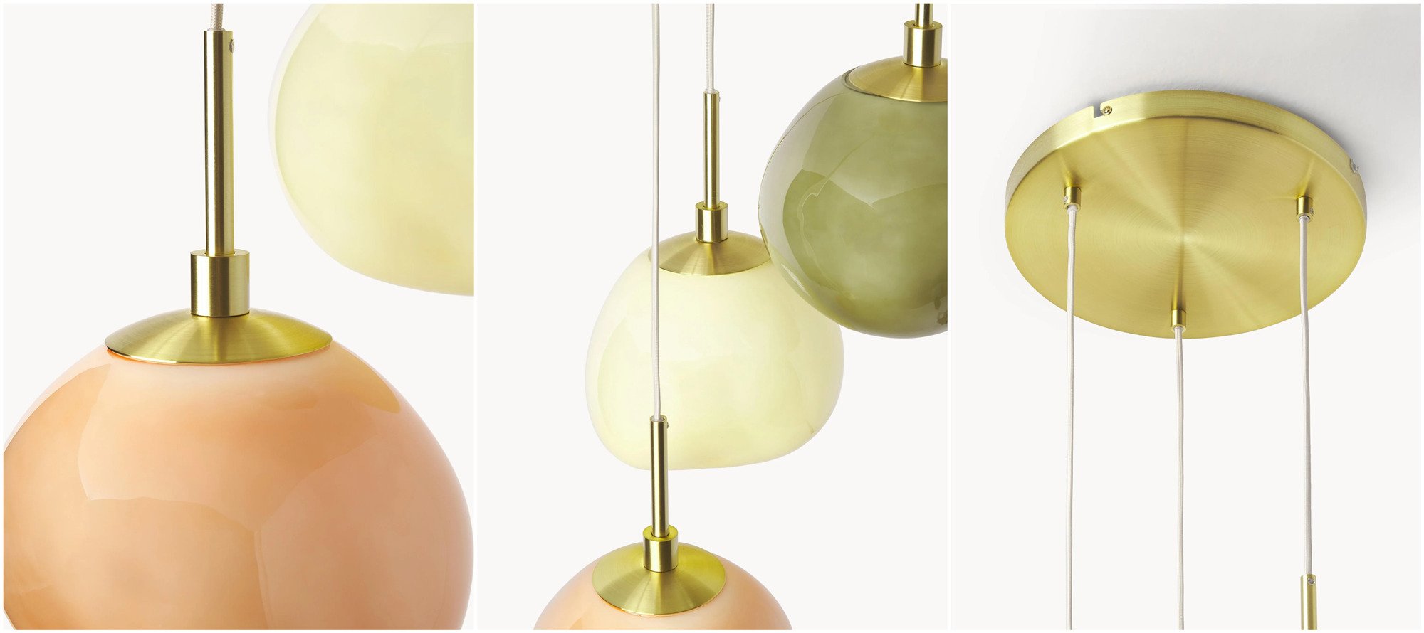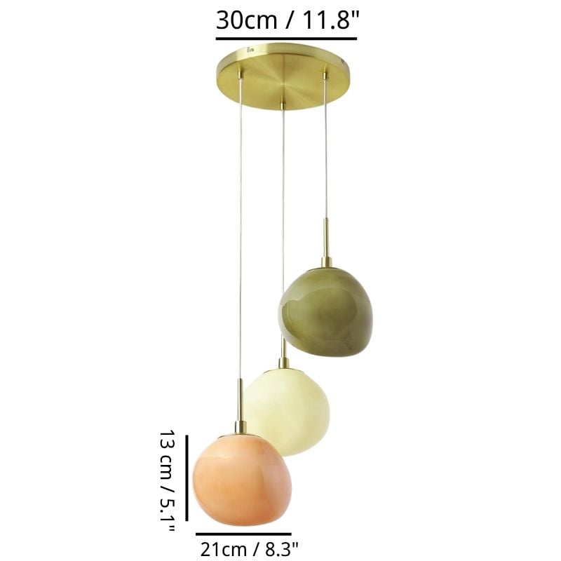 Multi-Shade Opal Glass Pendant - Cluster Hanging Lamp - 11.8" / 30 cm / Brass / Multi