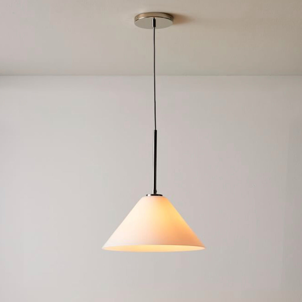Suspension conique en verre Conica – Luminaire de style moderne pour toutes les pièces - Laiton antique / Verre à lait / ∅ 8″ / Dia 20,3 cm