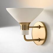 Applique murale câblée Calvor en bronze champagne – Abat-jour en porcelaine ivoire - Laiton antique / ∅ 9″ x H 9,4″ / Dia 22,9 cm x H 23,9 cm / Individuel