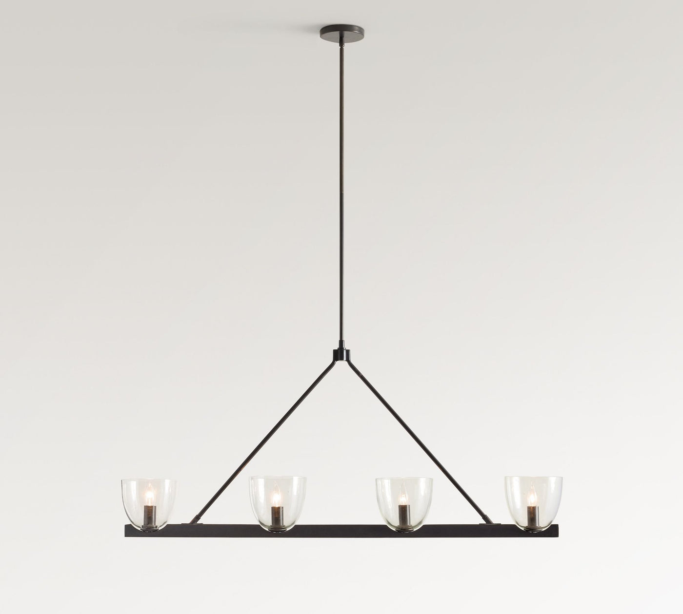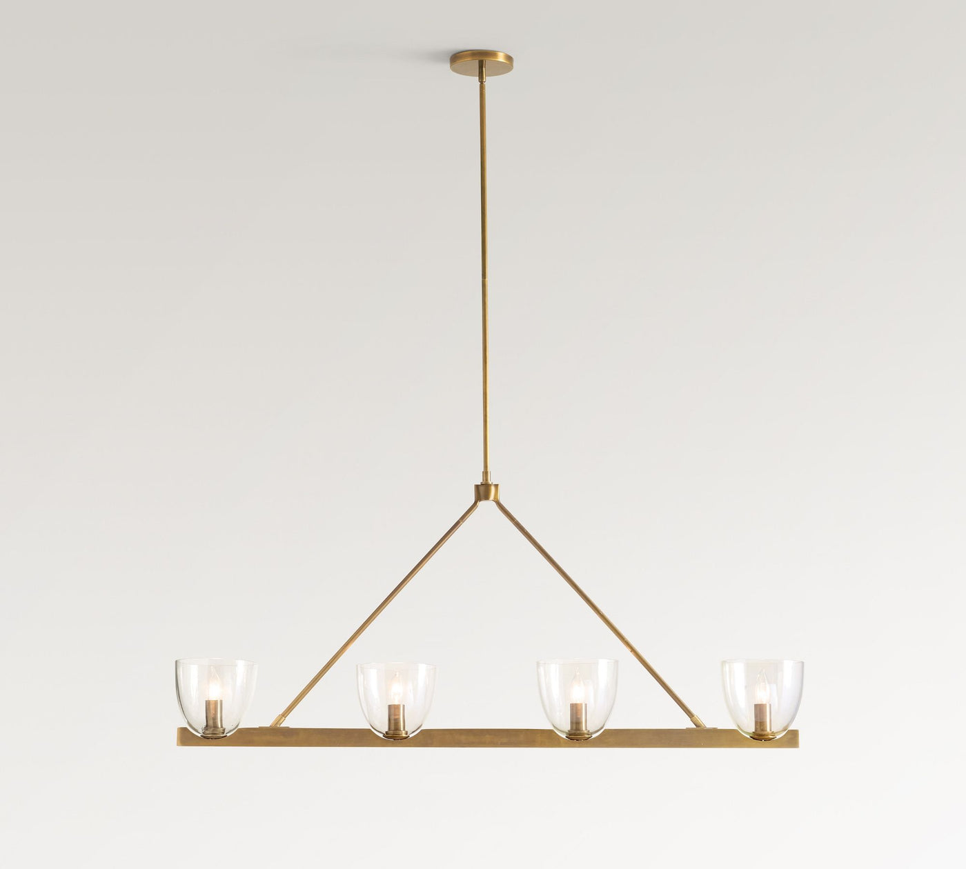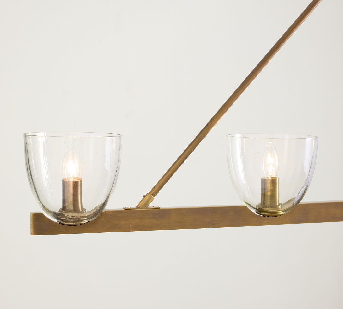 Lustre Auria en verre soufflé à la main et métal - Design contemporain en laiton - 4 têtes : L 48″ x H 21″ / L 122 cm x H 53,5 cm / Laiton vieilli