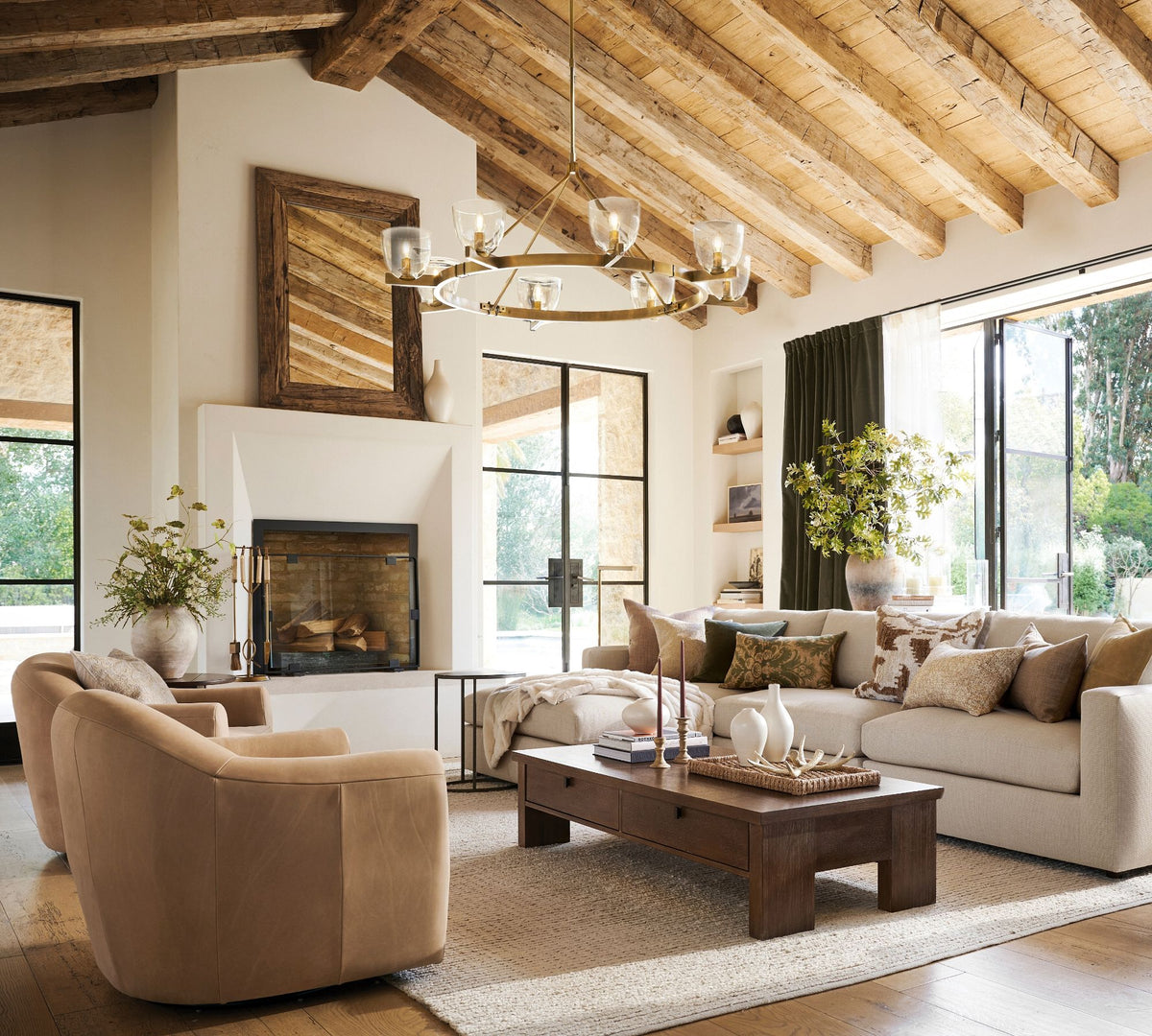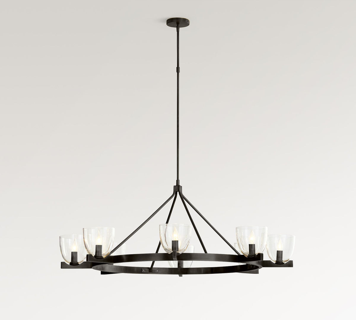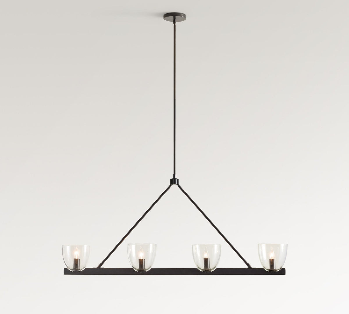 Lustre Auria en verre soufflé à la main et métal - Design contemporain en laiton - 4 têtes : L 48″ x H 21″ / L 122 cm x H 53,5 cm / Laiton vieilli