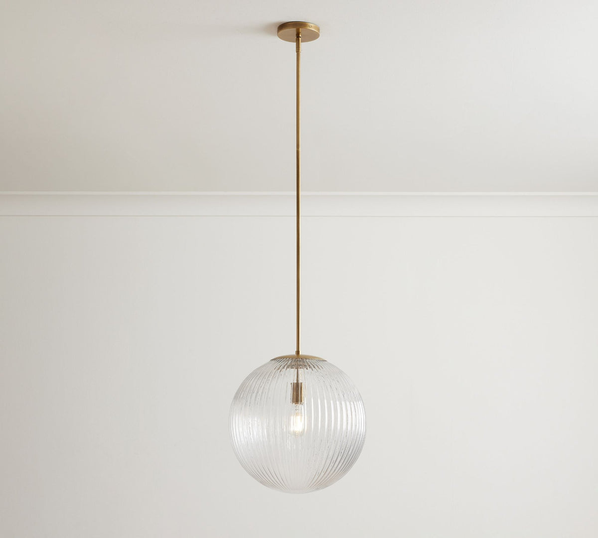 Suspension Bravira en verre strié – Lampe élégante pour îlot de cuisine - ∅ 4,5" x H 5″ / Dia 11,4 cm x H 12,7 cm / Laiton vintage