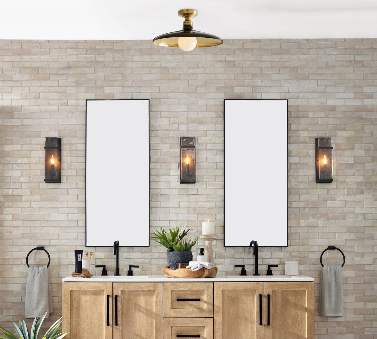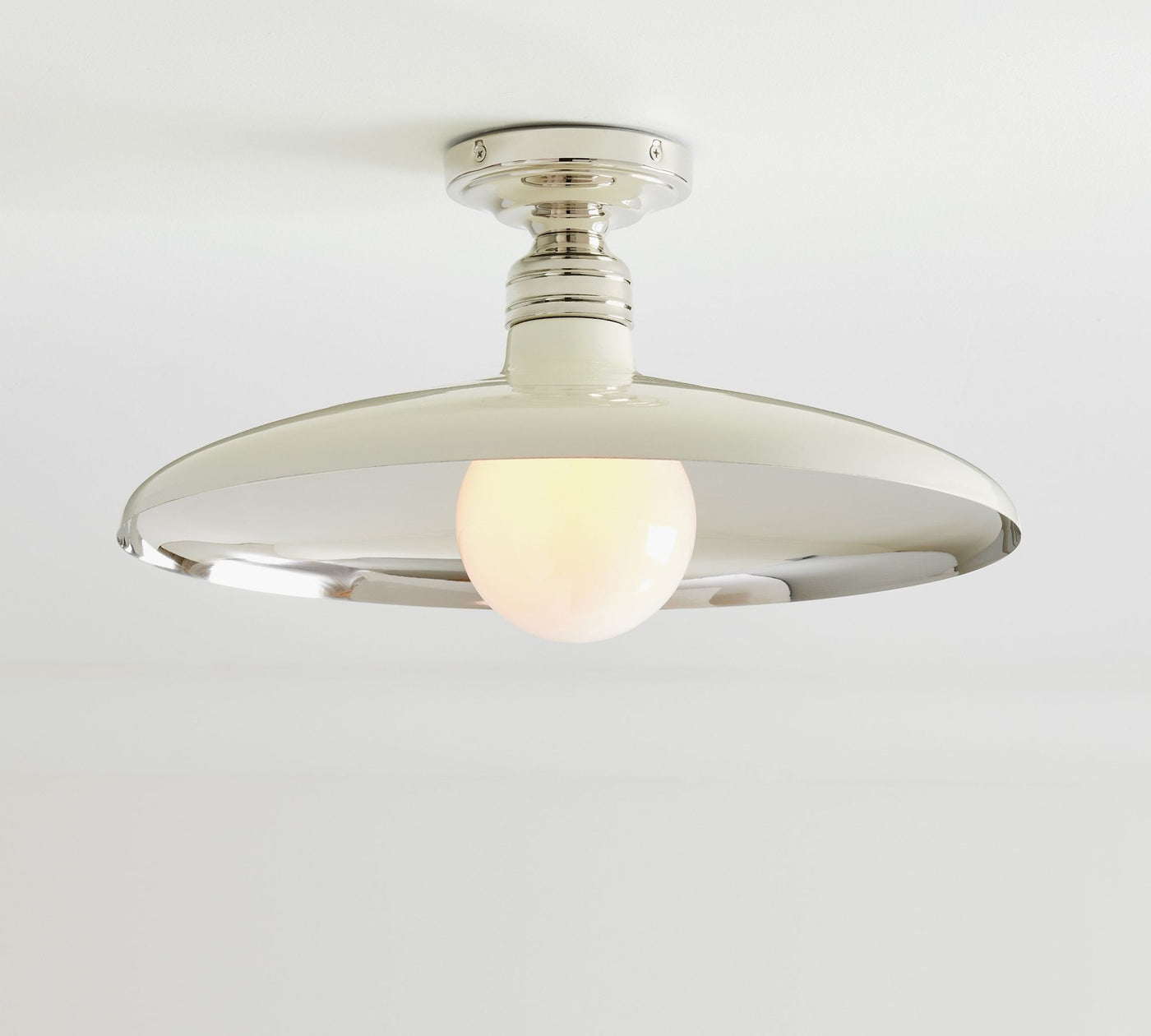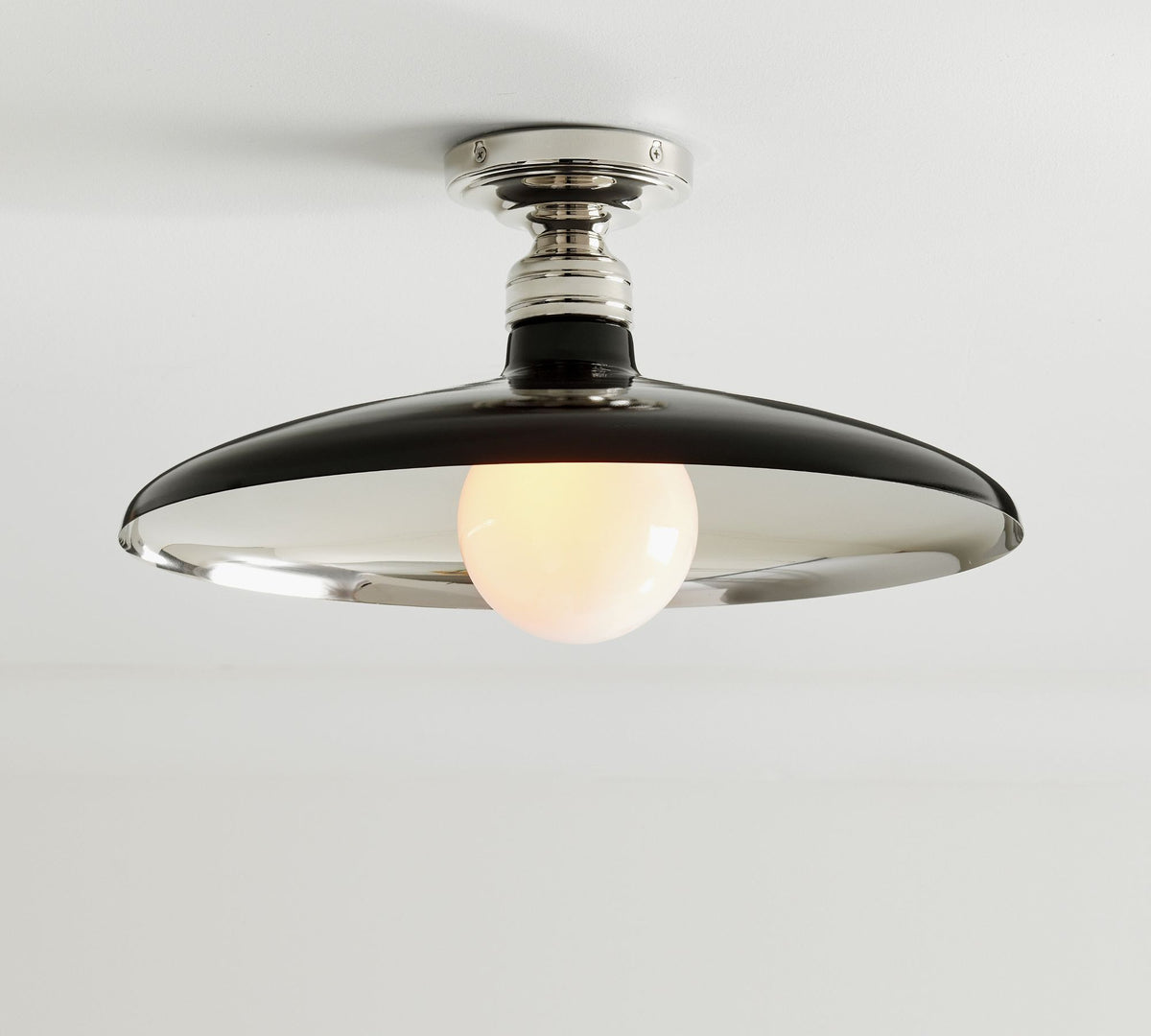Plafonnier en métal Forvara Farmhouse - Noir ou blanc - ∅ 18" x H 4,5″ / Dia 45,7 cm x H 11,4 cm / Blanc chaud et nickel poli