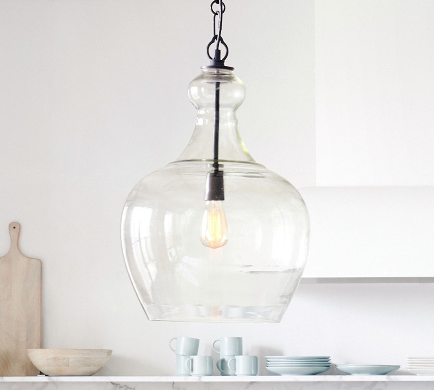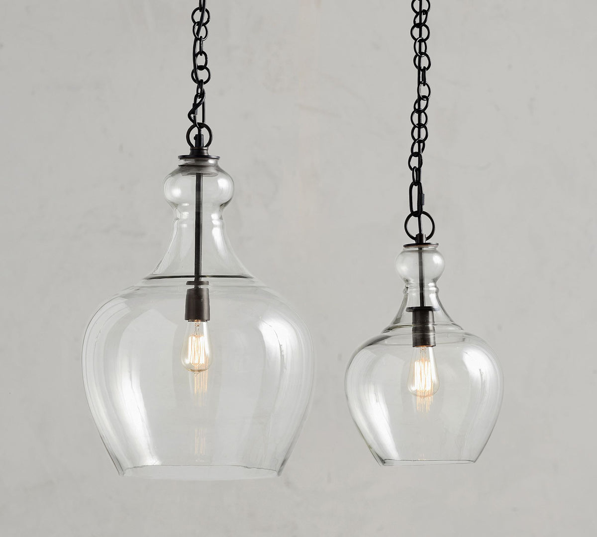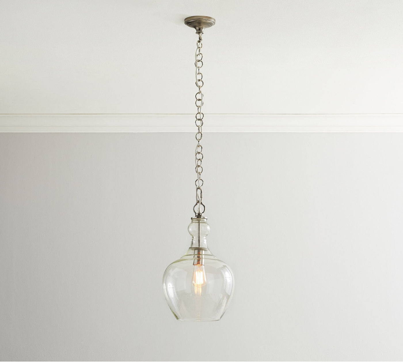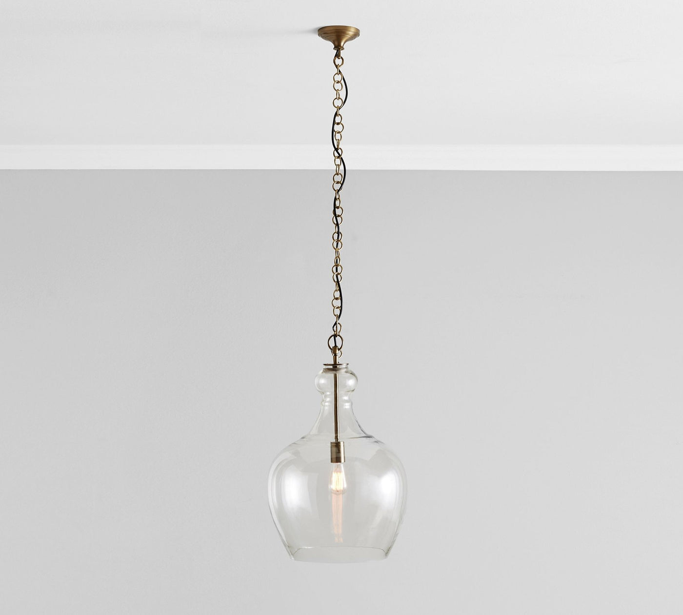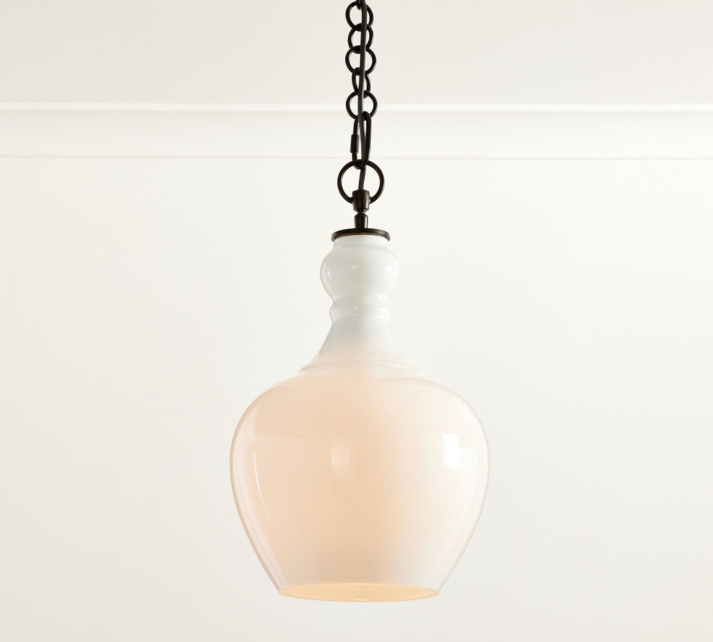 Suspension en verre Lawson – Verre recyclé et laiteux avec accents bronze - ∅ 11,5″ x H 17″ / Dia 29,2 cm x H 43,2 cm / Clair / Bronze