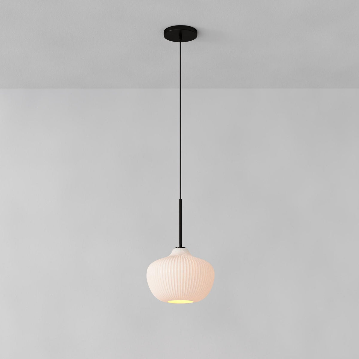 Suspension Rivrona à nervures – Luminaire moderne en verre nervuré avec finition métallique - ∅ 7,6″ x H 18,2″ / Dia 19,3 cm x H 46,2 cm / Laiton antique