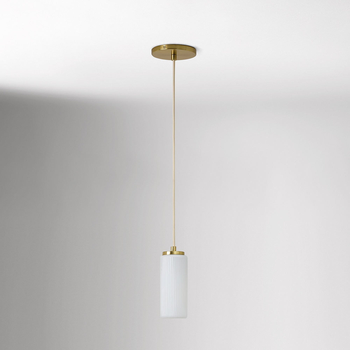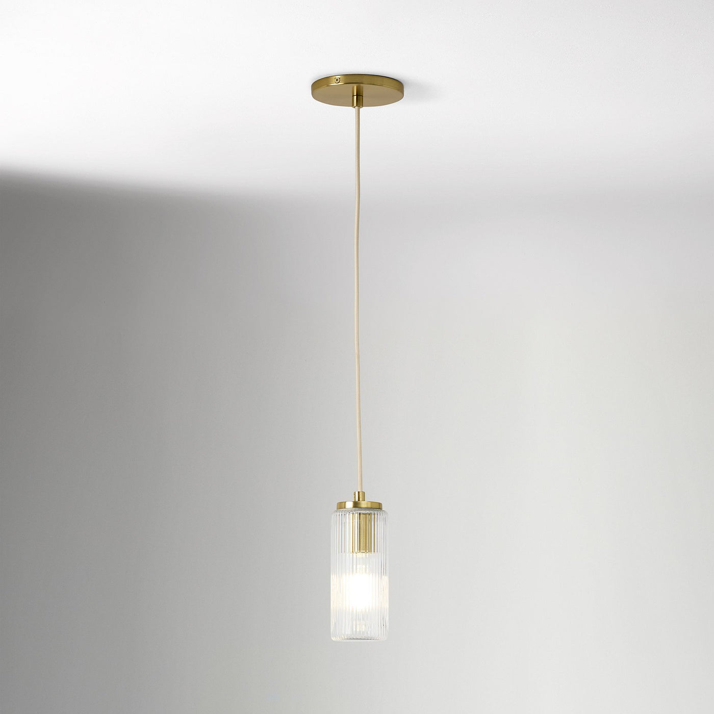 Suspension en verre cannelé Rivora – Abat-jour côtelé moderne - Verre transparent / Laiton antique / ∅ 5″ x H 6,7″ / Dia 12,7 cm x H 17 cm