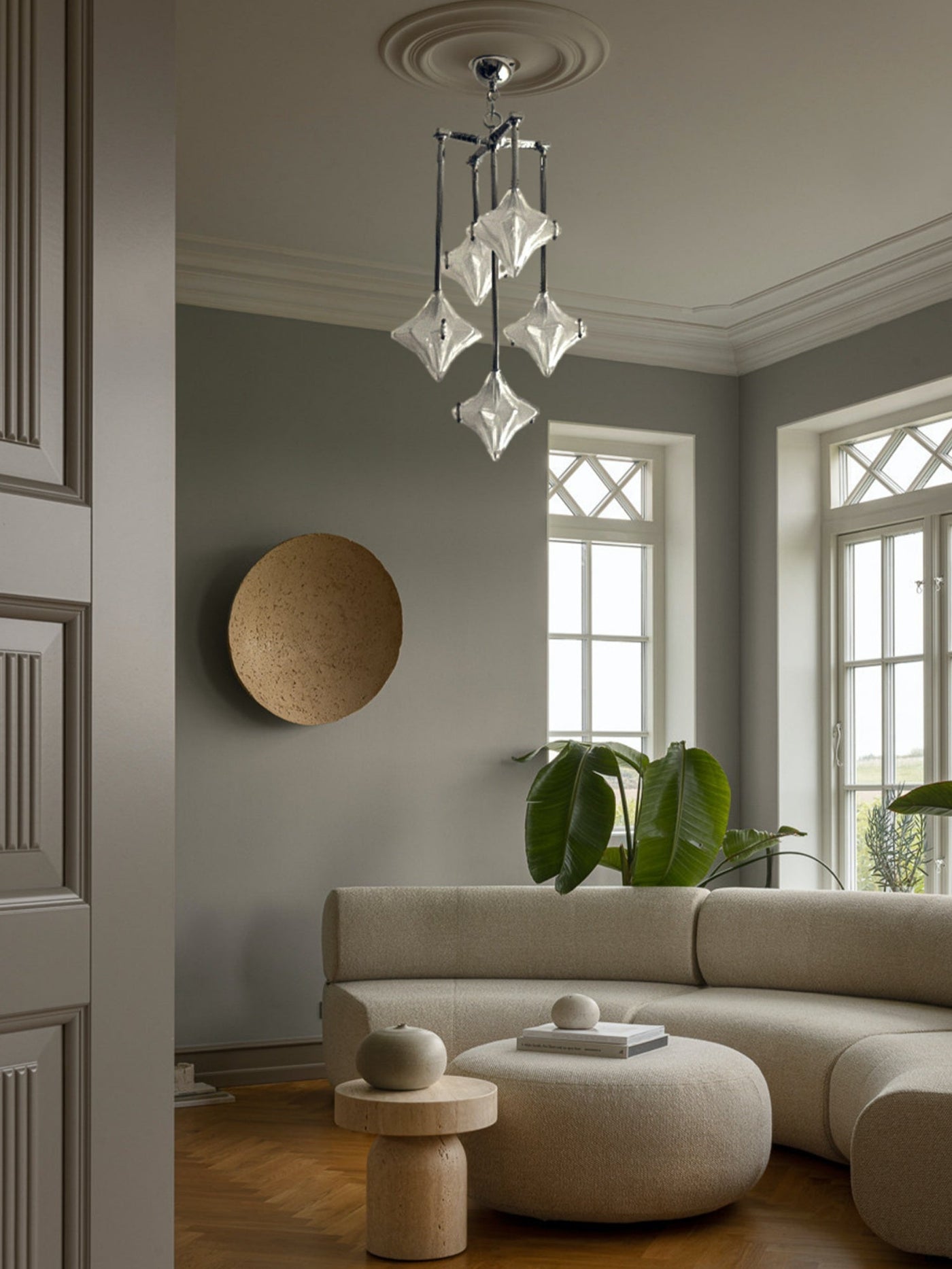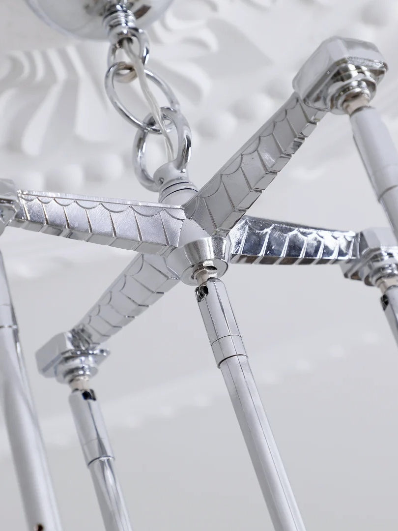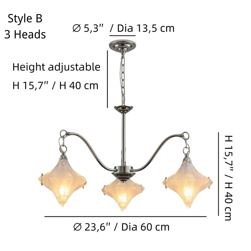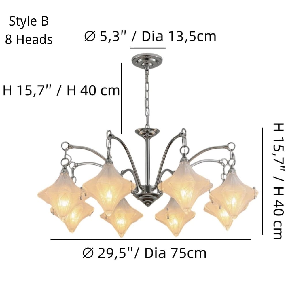 Art Deco Astris Star Chandelier -Frosted Glass Deco Fixture for Dining Room