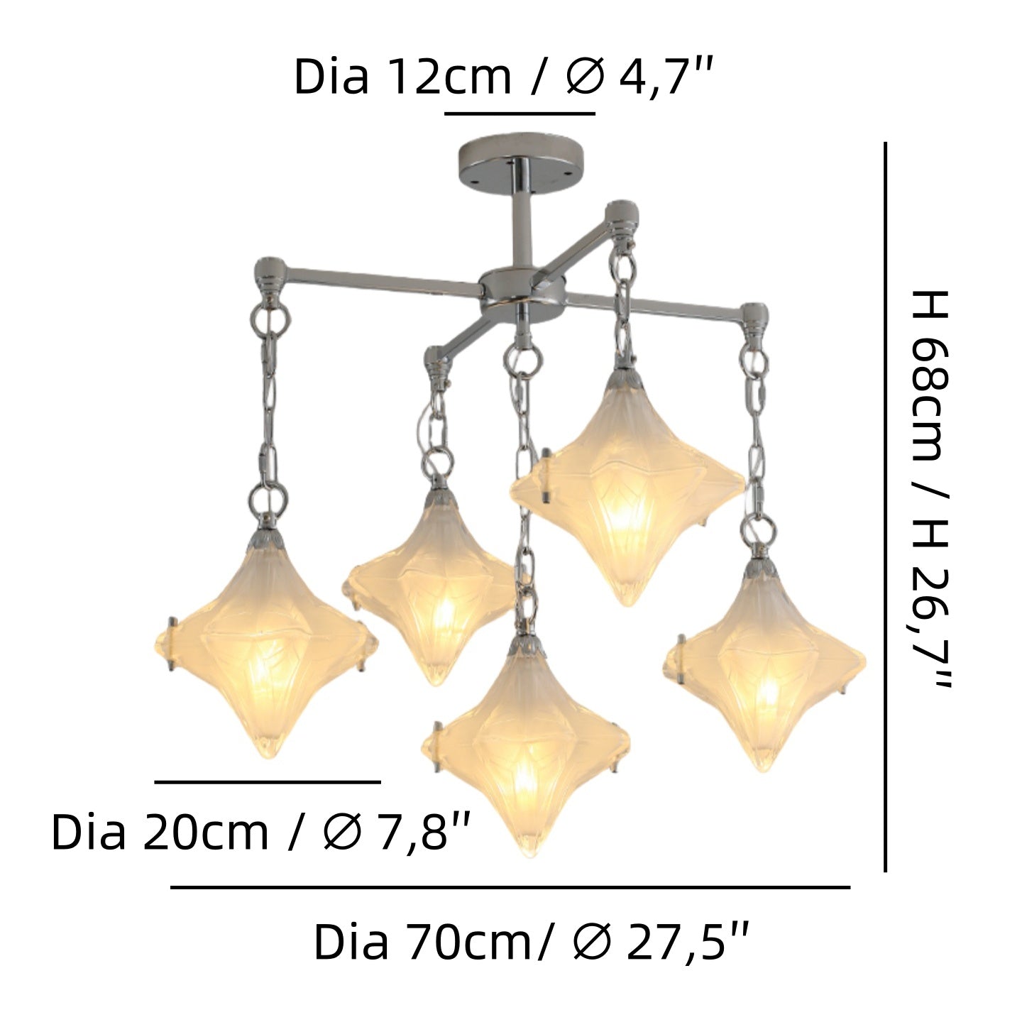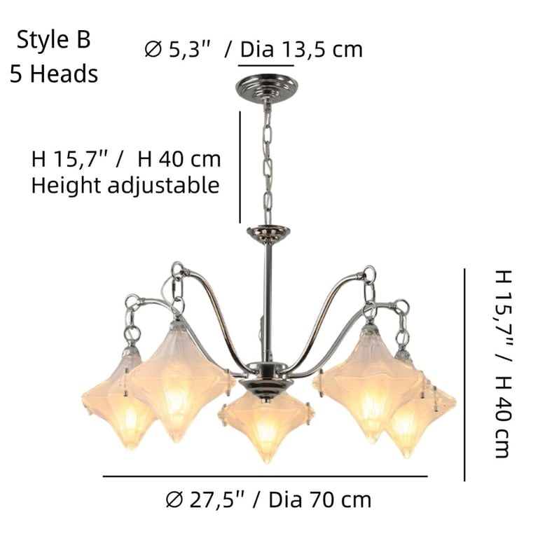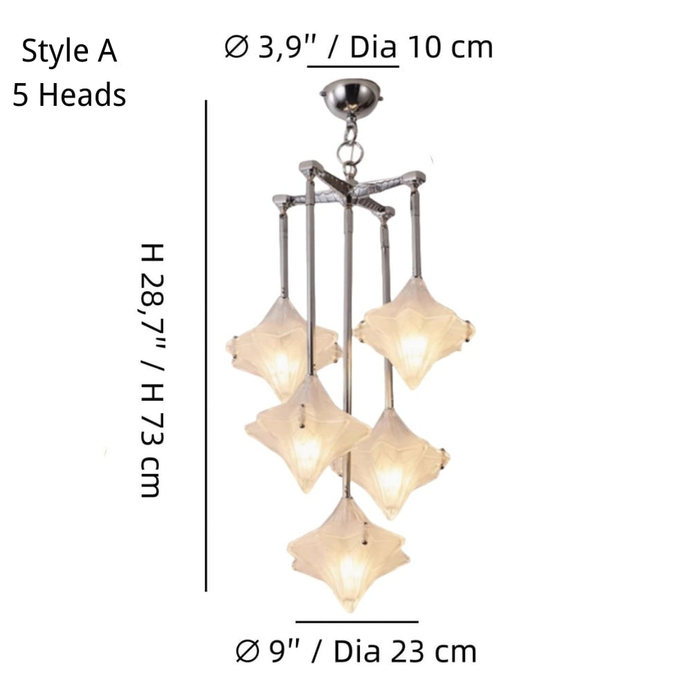 Art Deco Astris Star Chandelier -Frosted Glass Deco Fixture for Dining Room - Style A / 5 heads
