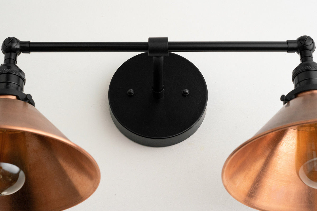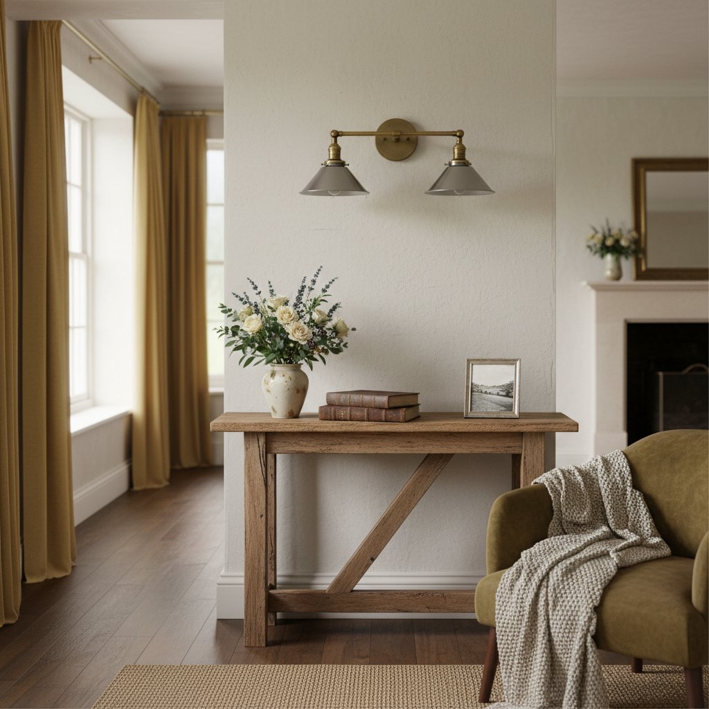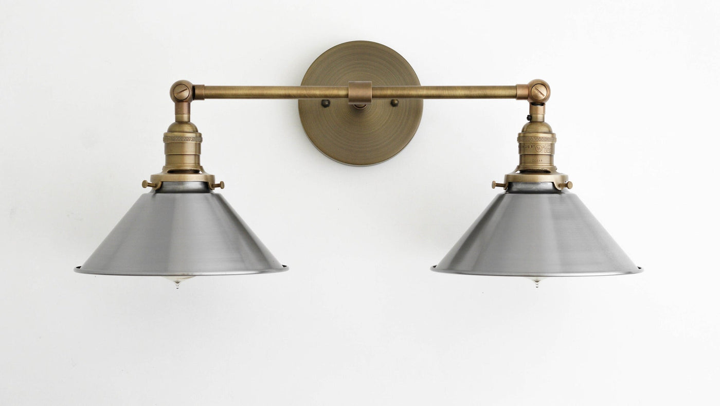 This industrial wall light features two tapered metal shades and sturdy mechanical-inspired arms with a circular base. Its raw, vintage aesthetic adds character to loft apartments, hallways, and commercial spaces like cafes and restaurants. The combination of rugged metal and warm lighting creates a unique industrial retro atmosphere.