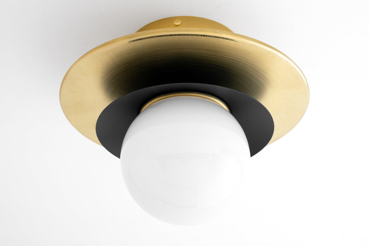 Elevate your space with this modern brass ceiling light. Featuring a sleek design with a brass finish and a subtle accent ring, it adds a touch of elegance to any room. Perfect for enhancing your home’s ambiance with a blend of contemporary style and timeless charm.